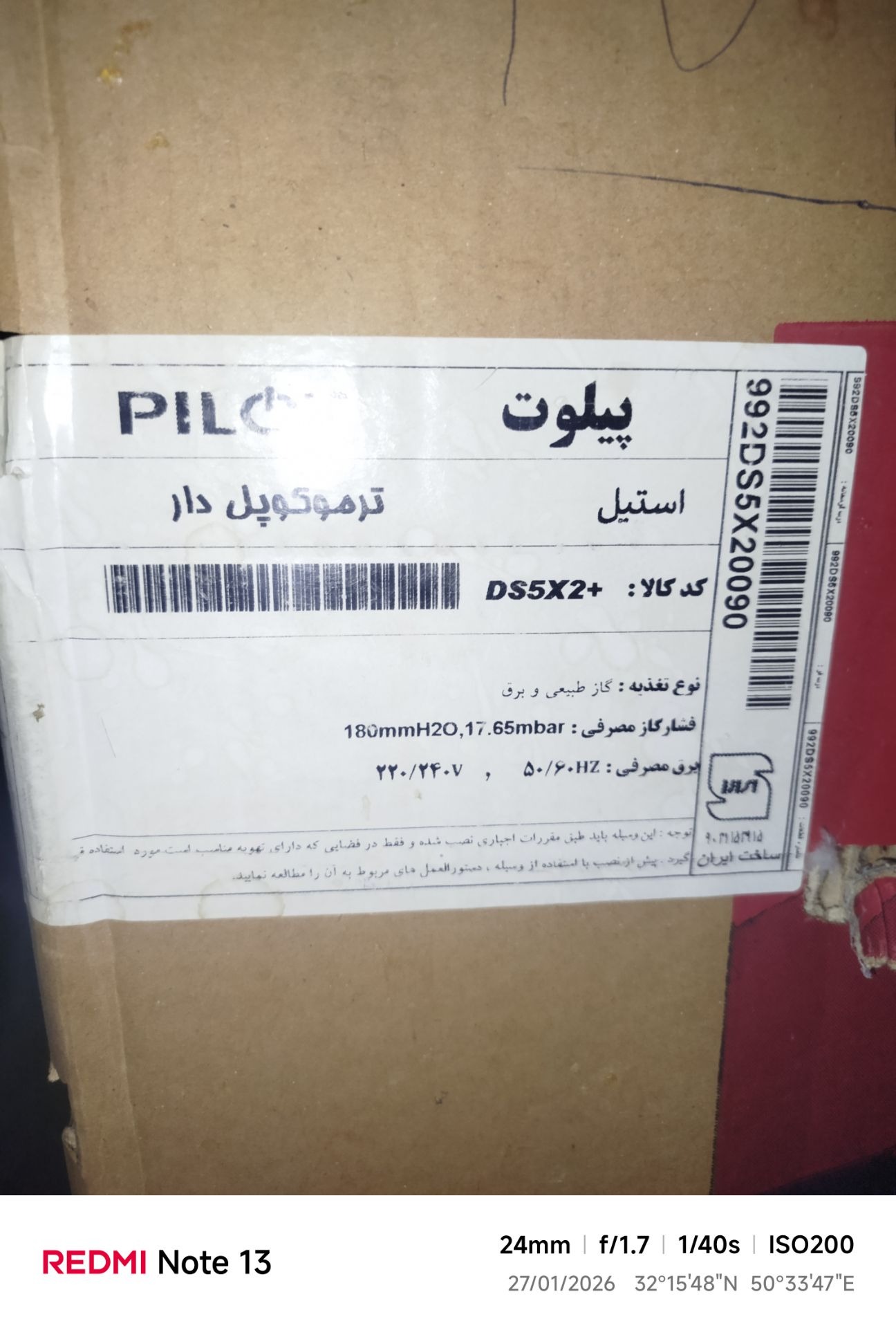اجاق گاز پیلوت مدل ds5x2