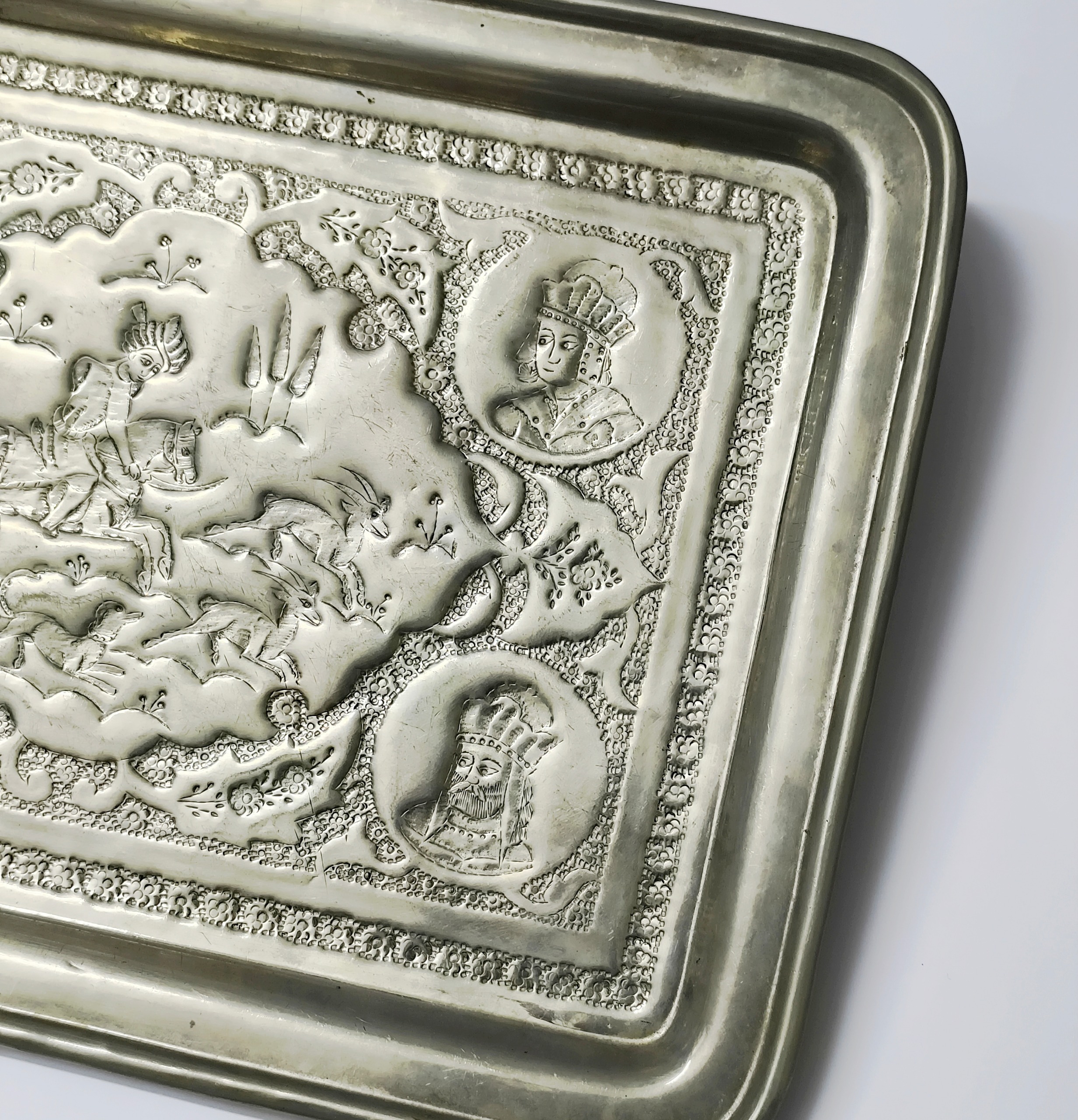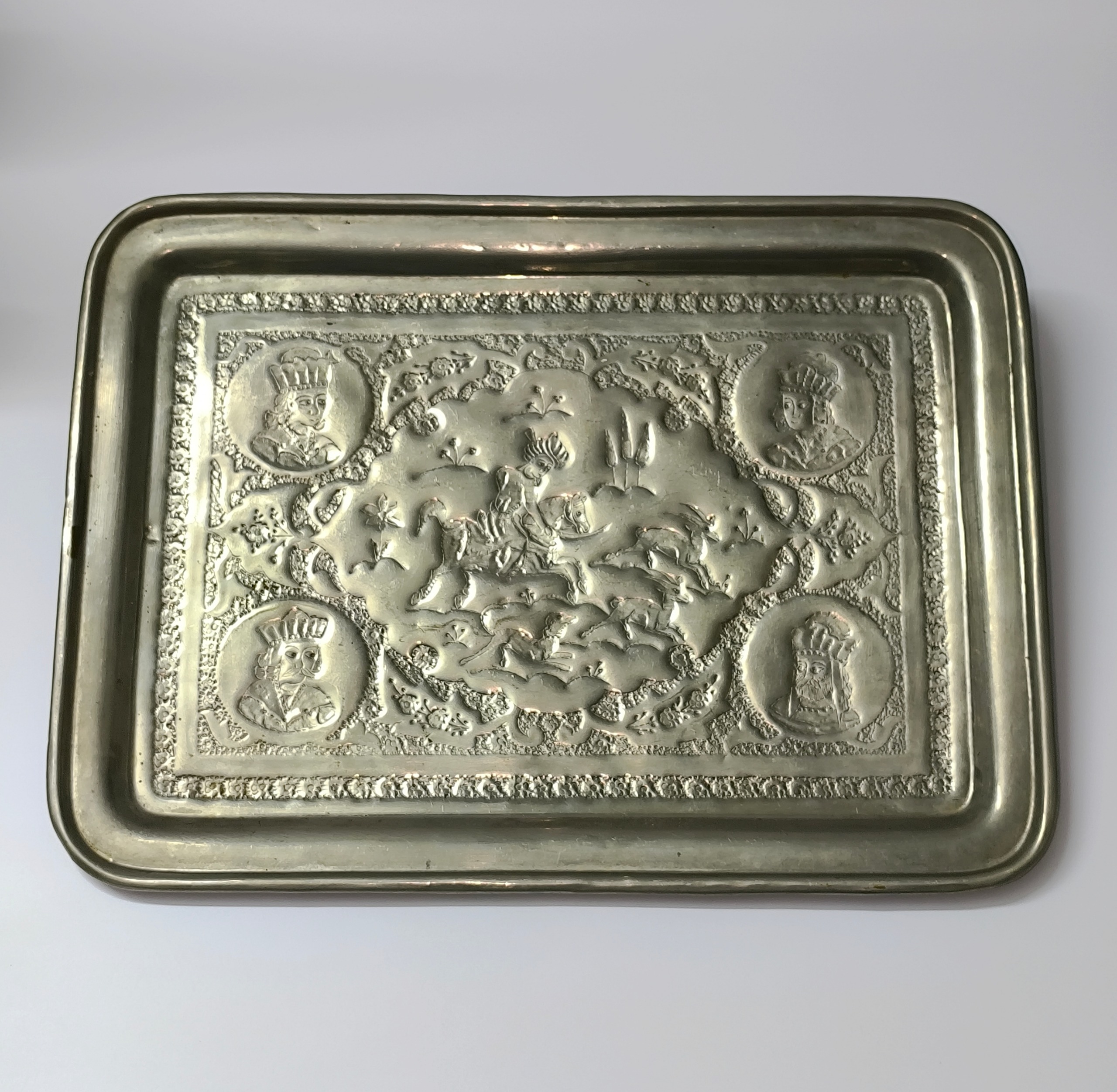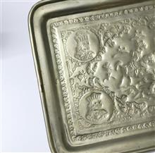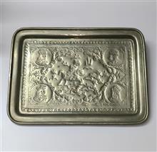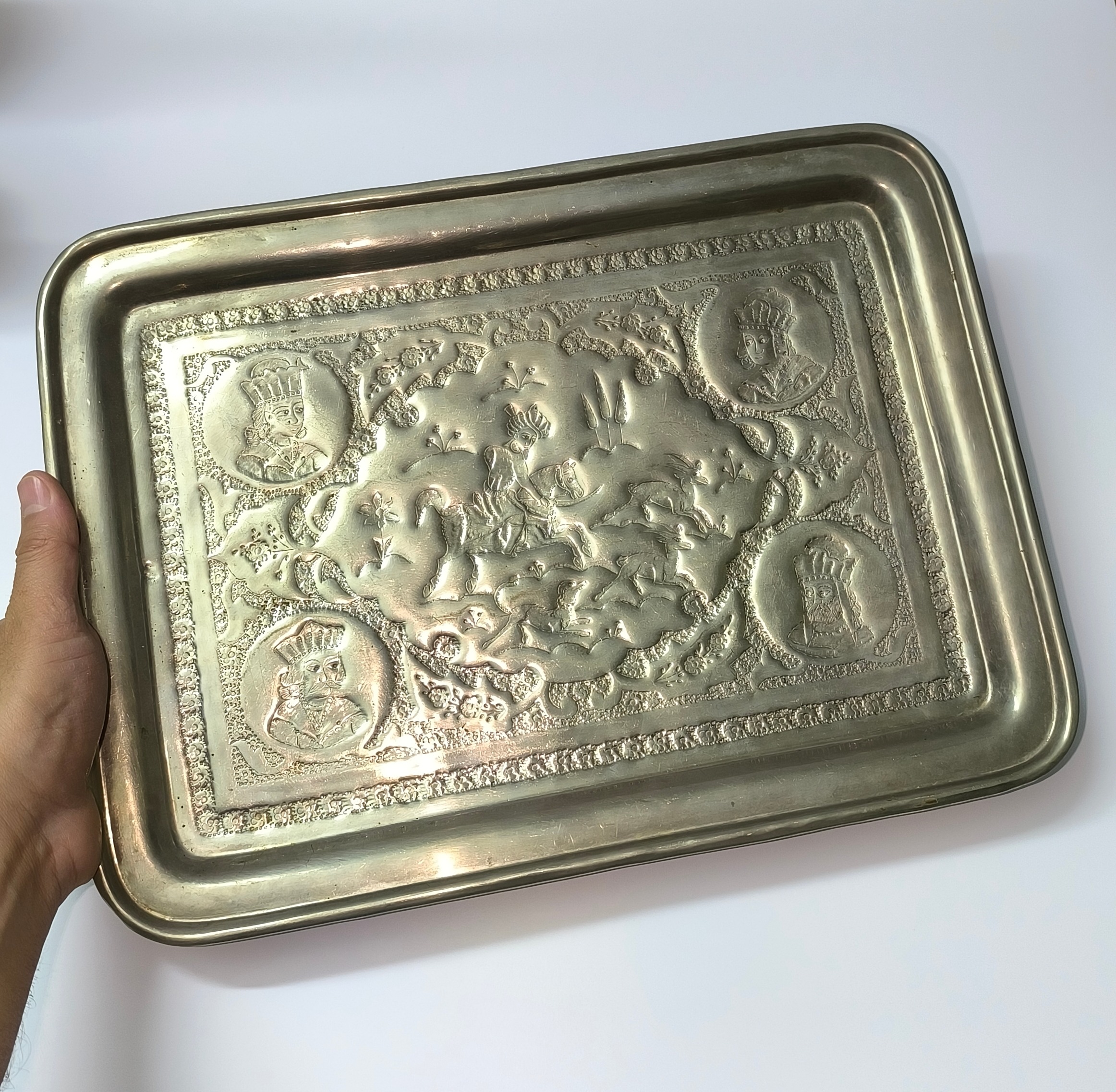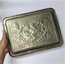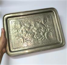 سینی قلمزنی مسی قدیمی با تصویر چهار پادشاه