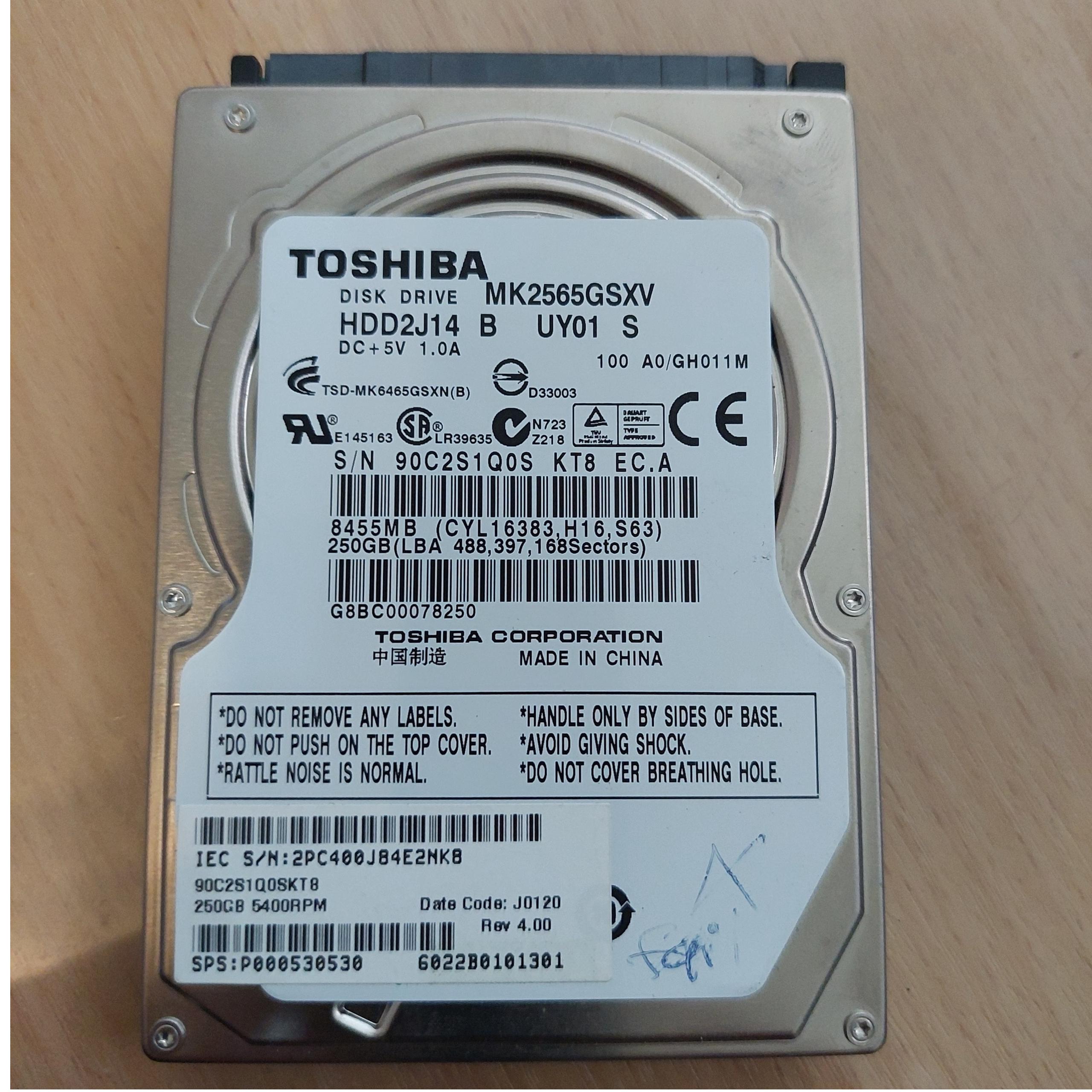 هارد 2.5 اینچ از برند توشیبا ظرفیت 250 گیگ معیوب