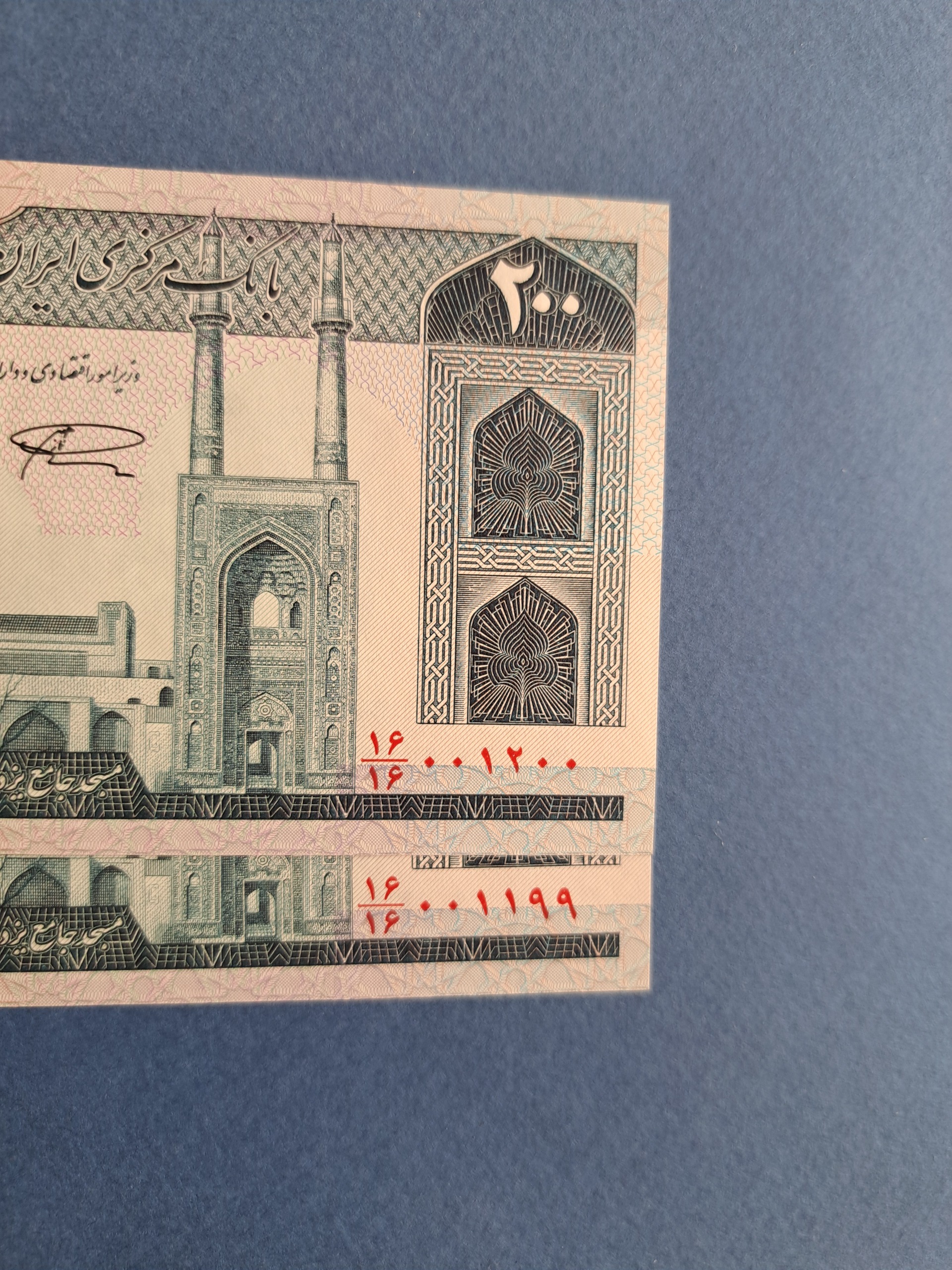 جفت ارزشمند 200 ریالی کسر کمیاب 16/16 با شماره سریال بسیار قشنگ 0 0 2 1 0 0 تقدیم میشود
