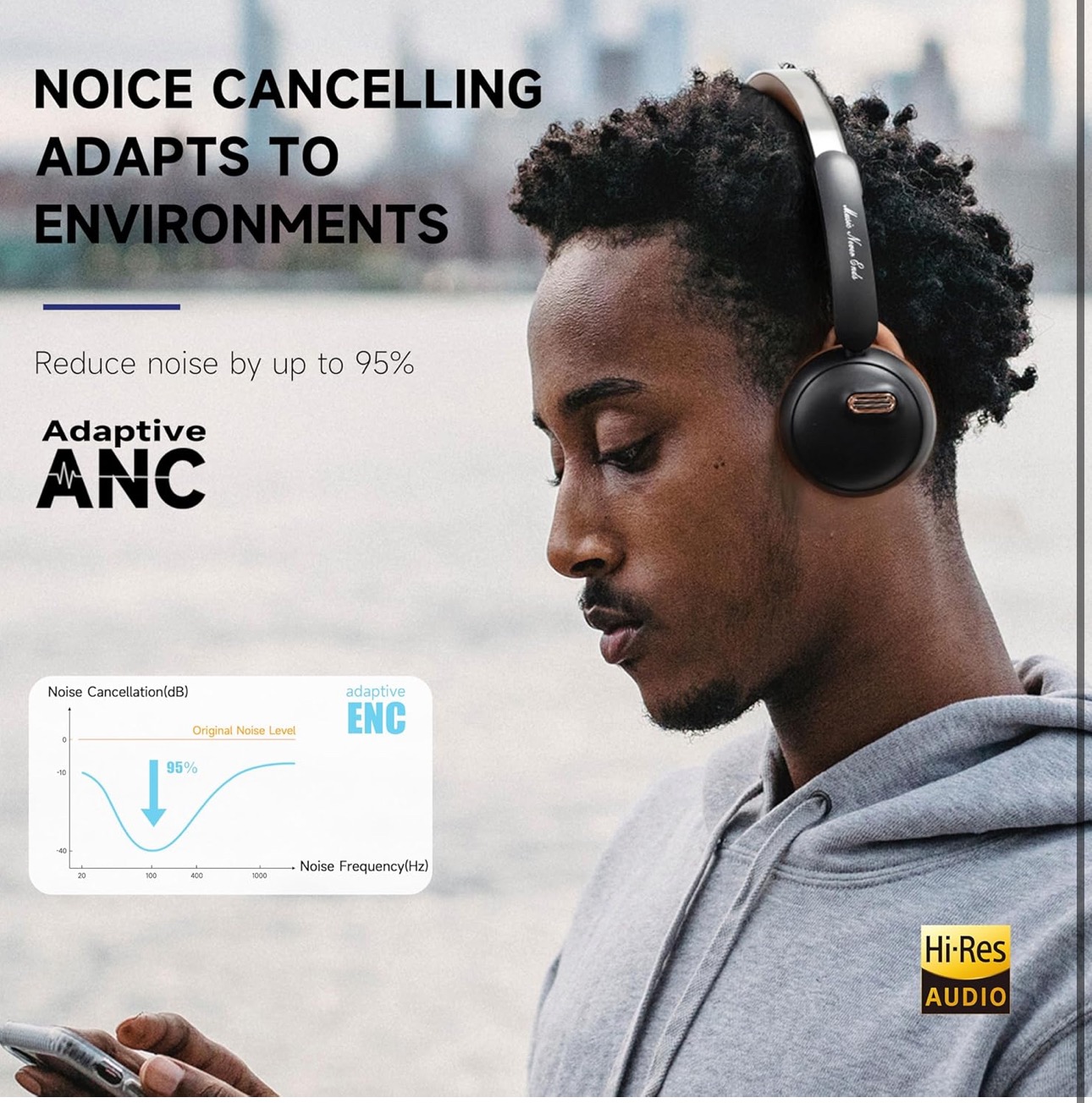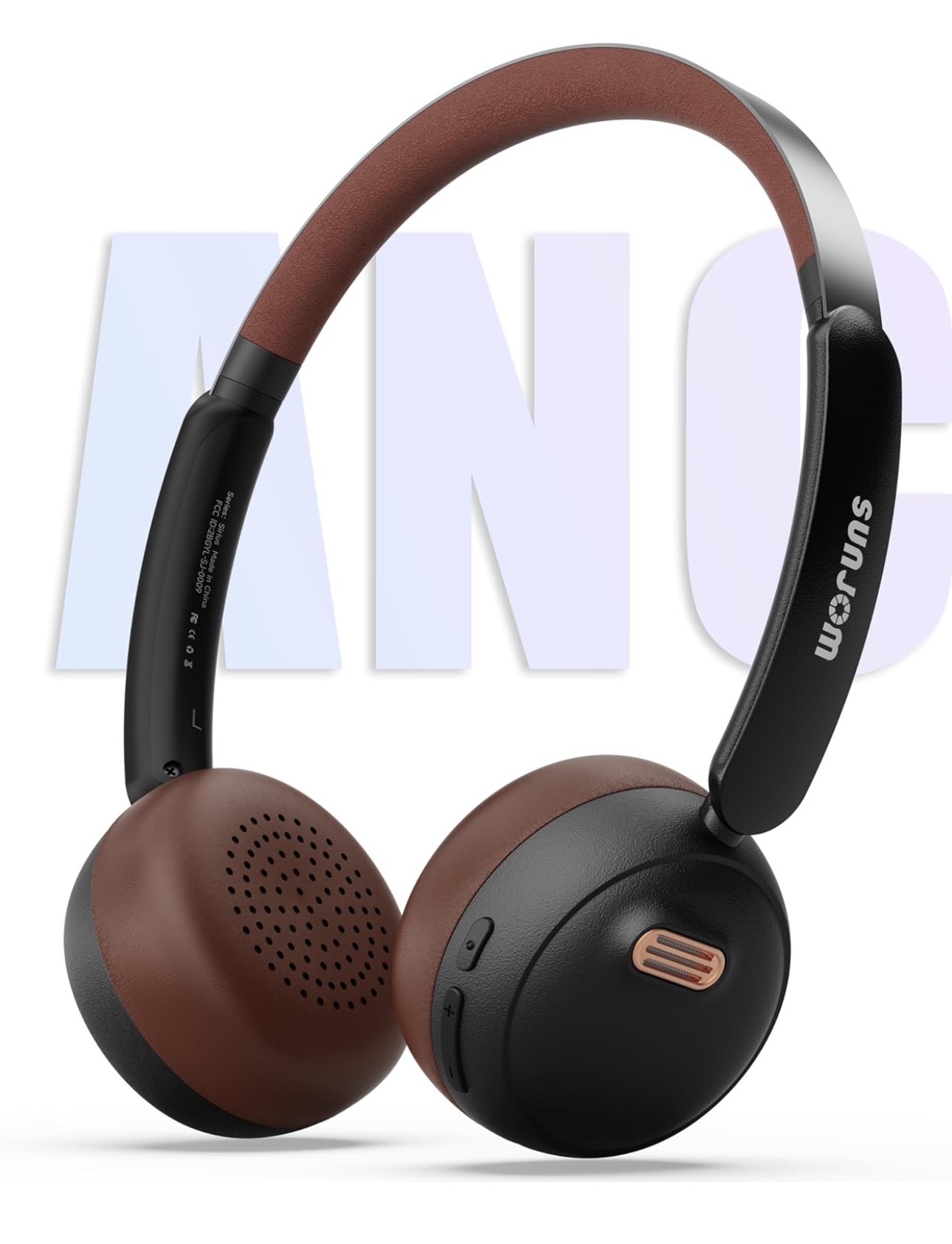 هدفون بیسیم Sirius با قابلیت حذف نویز 70 ساعته، بلوتوث، بیسیم، ANC/ENC، هدفون هیبریدی روی گوش، سبک وزن با میکروفون داخلی برای کودکان، دانشآموزان، باشگاه ورزشی مشکی