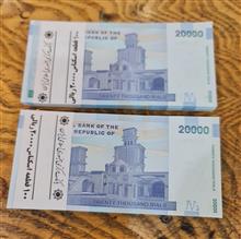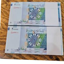 دوبسته اسکناس دوهزاری قدیمی از یک باکس قرینه وتکرار
