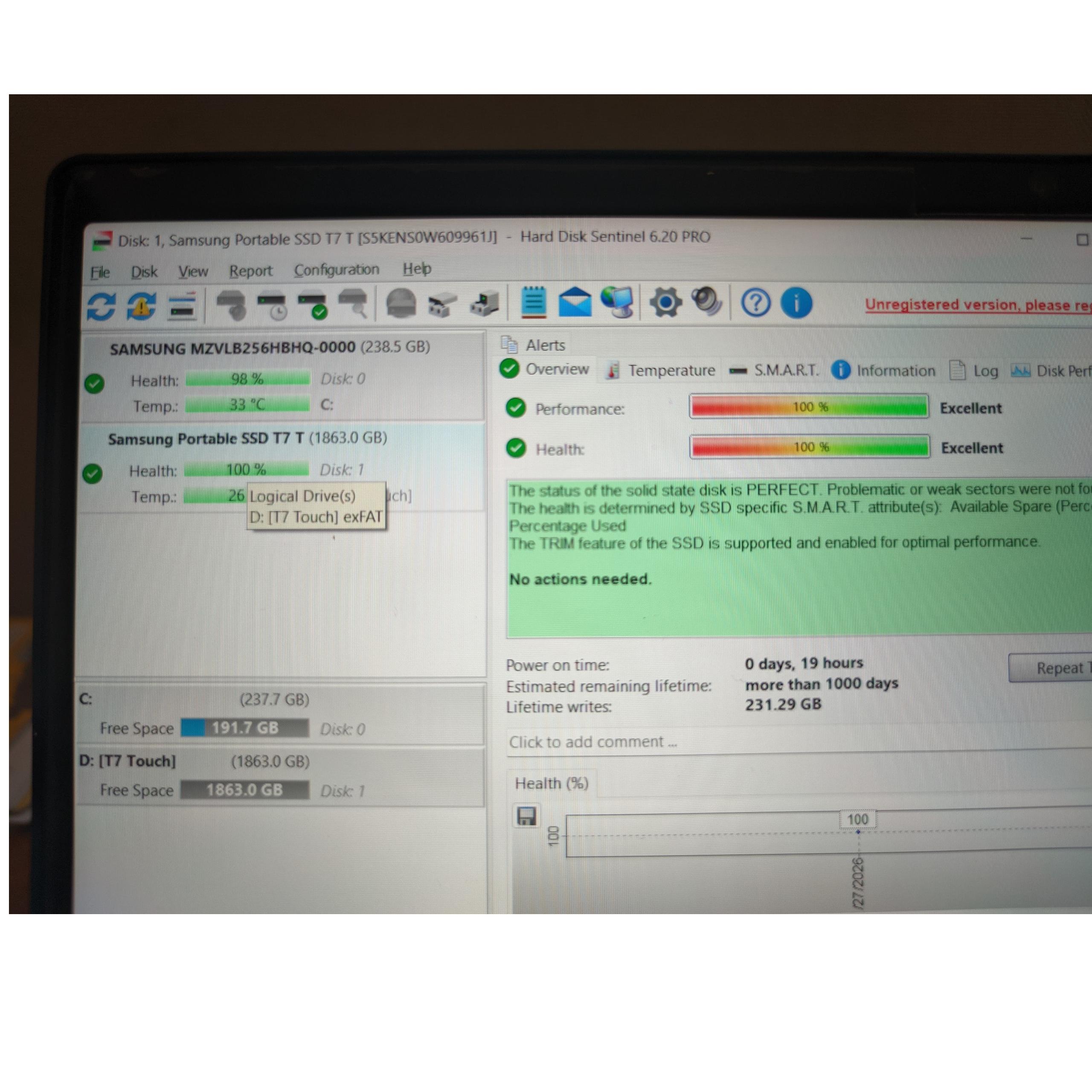 سامسونگ t7 touch ssd دو ترا گارانتی اثر انگشت