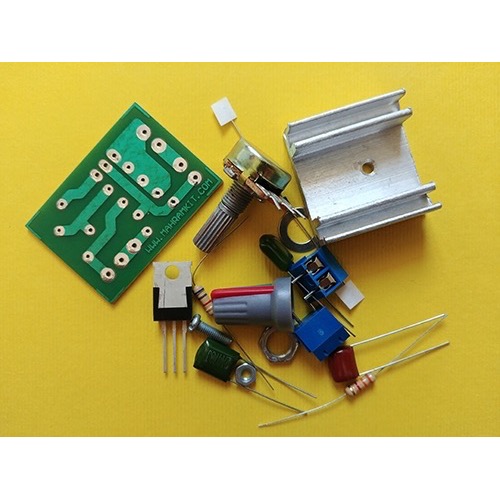 این کیت اموزشی باید لحلم کاری و مونتاژ شود. پس از مونتاژ بوسیله این مدار می توانید نور لامپ و یا دور موتورهای 220 ولت AC (مانند دریل برقی ، کولر و ...) و یا شدت حرارت انواع المنت را کم و یا زیاد نمائید.