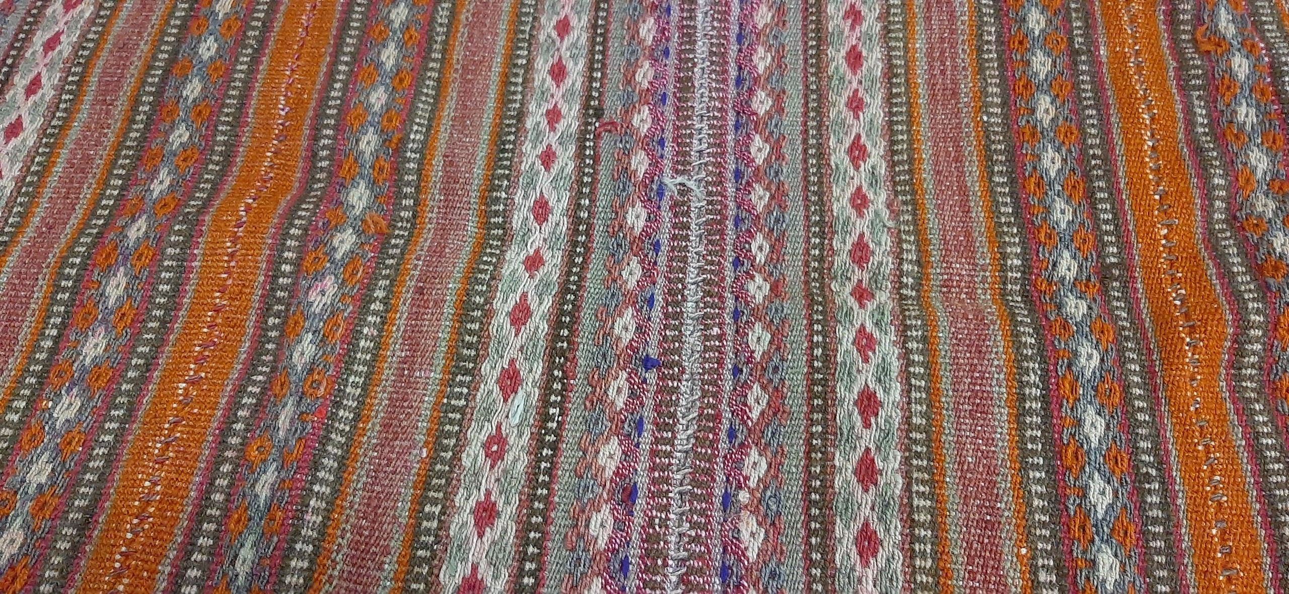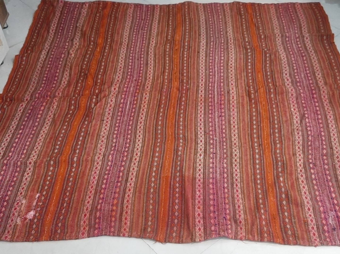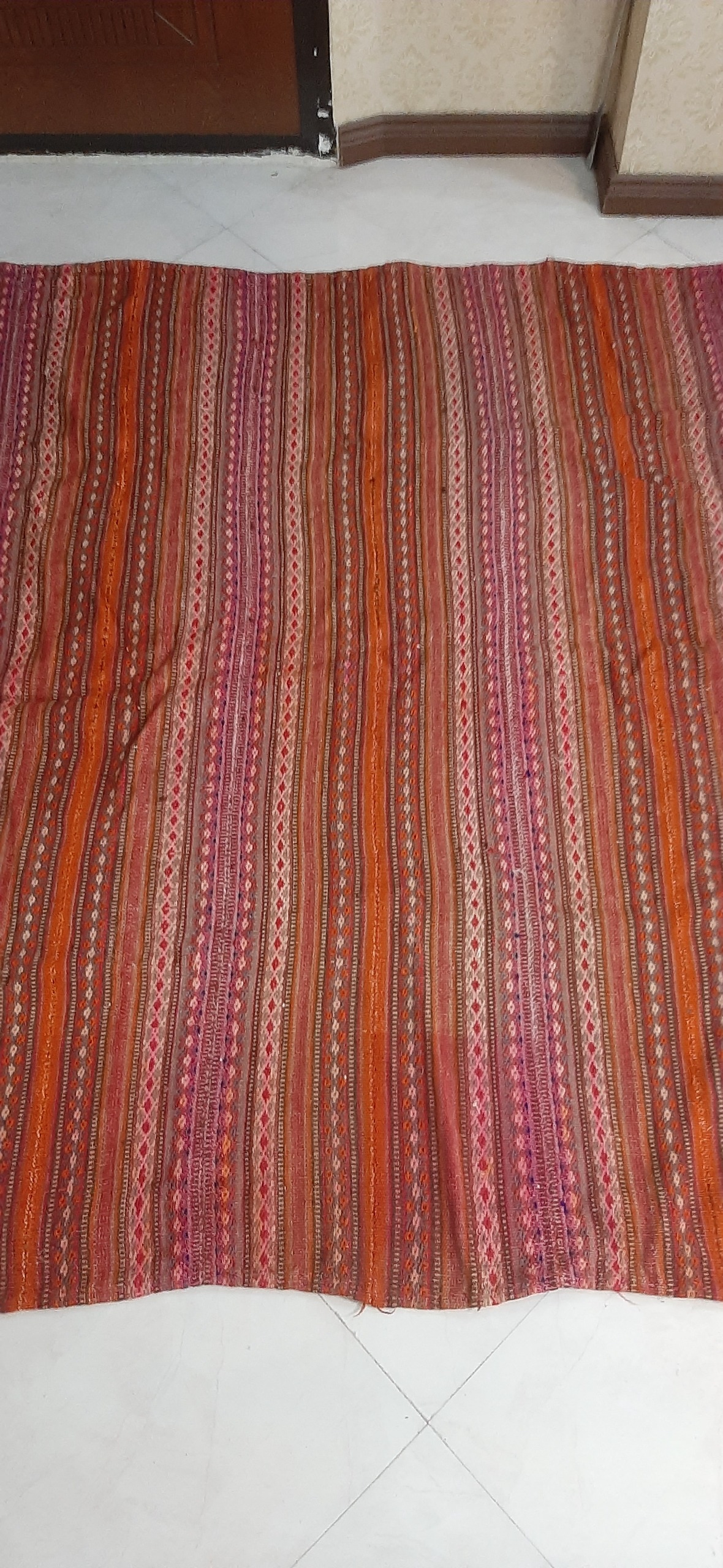 جنسش پشمی هست و 8 تکه است،برای جهیزیه مادربزرگم بوده،حدود 90 سال قدمت داره.طرح و رنگبندی خیلی زیبایی داره. ابعادش بصورت دقیق 1/80×1/90 هست.