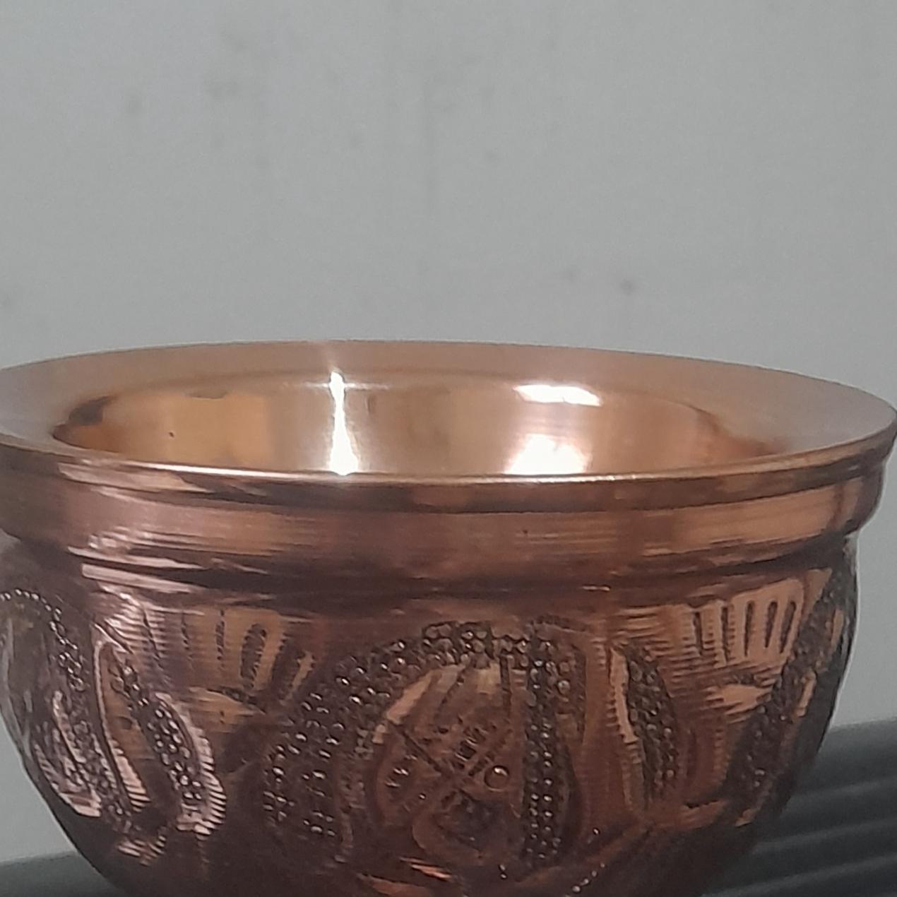 یک عدد قندان زیبای مسی قلمکاری شده سنگین کاردستی هنرمندان چیره دست زنجان کاربسیار شیک وزیبا وزن نزدیک نیمکیلو ارتفا 12س