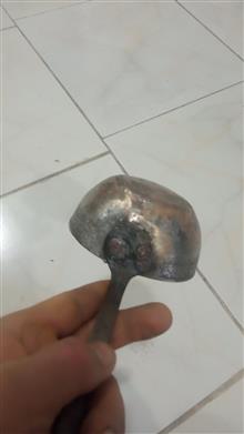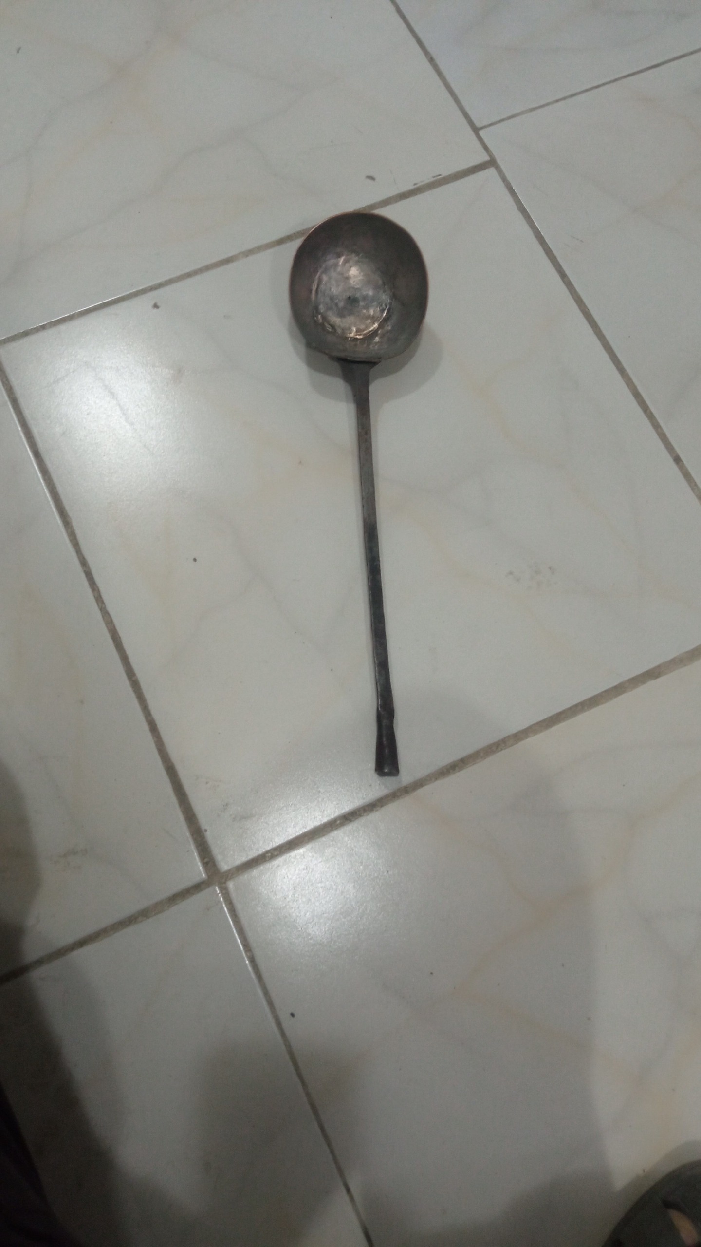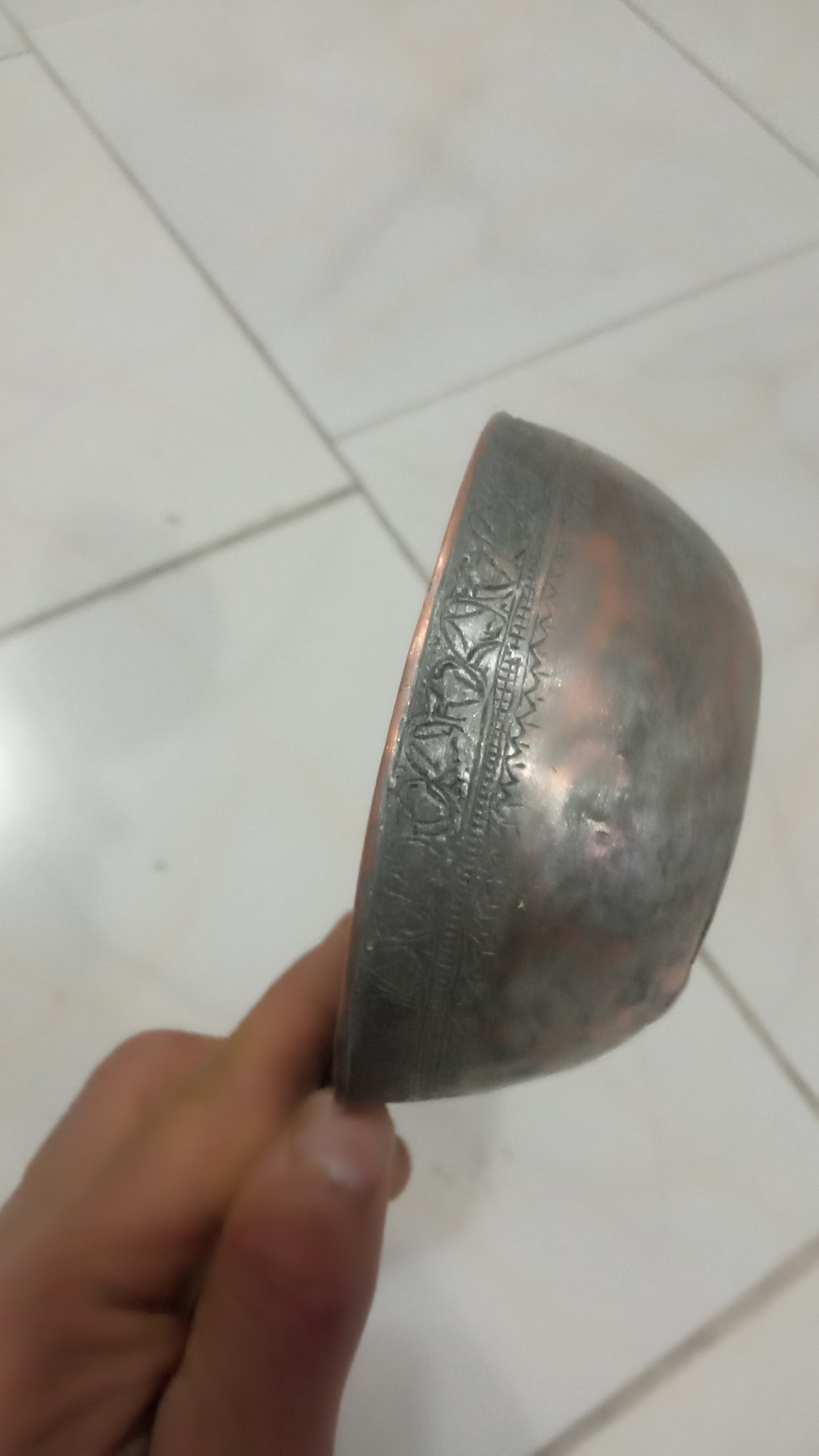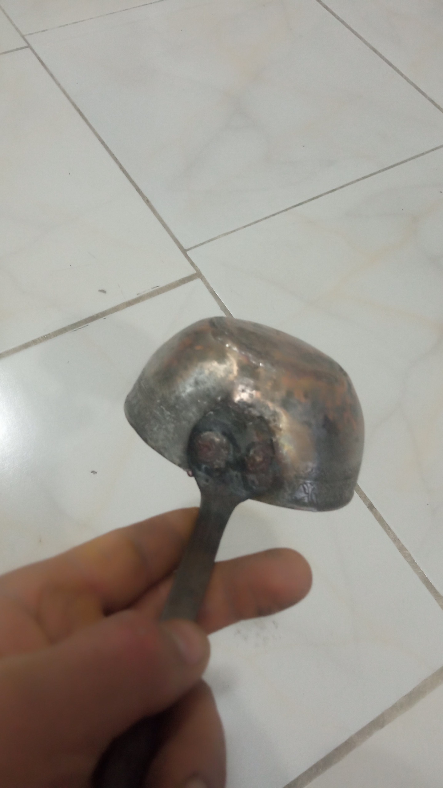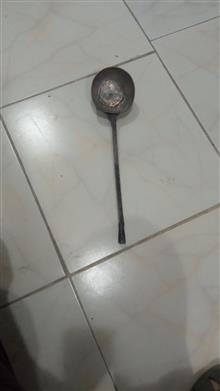 ملاقه یا آبگیر قدیمی.مسی صاحبه دار است دسته فولادی نقلی کم یاب