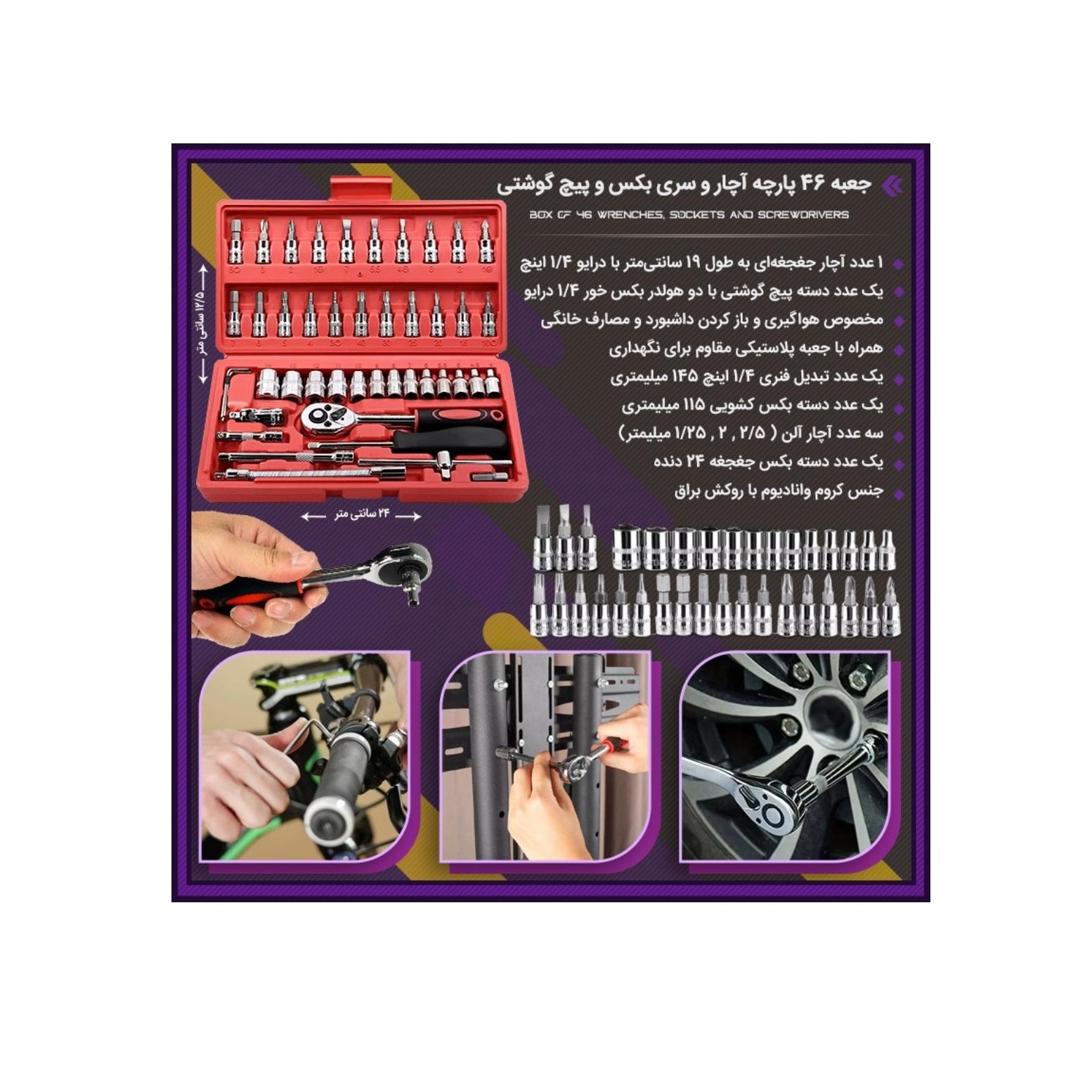 جعبه 46 پارچه آچار و سری بکس و پیچ گوشتی