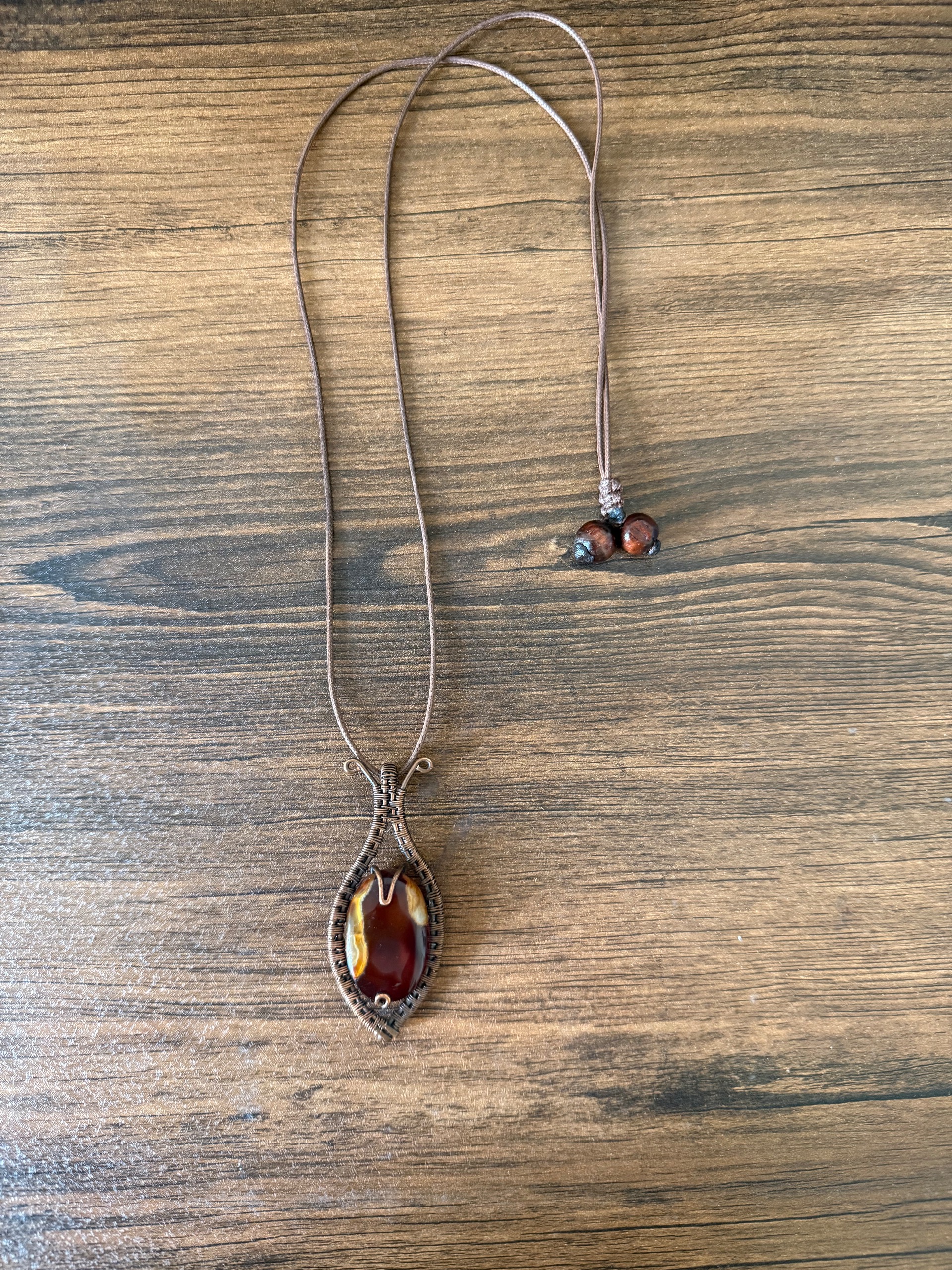 گرنبند سنگ عقیق پلاک دست ساز مسی