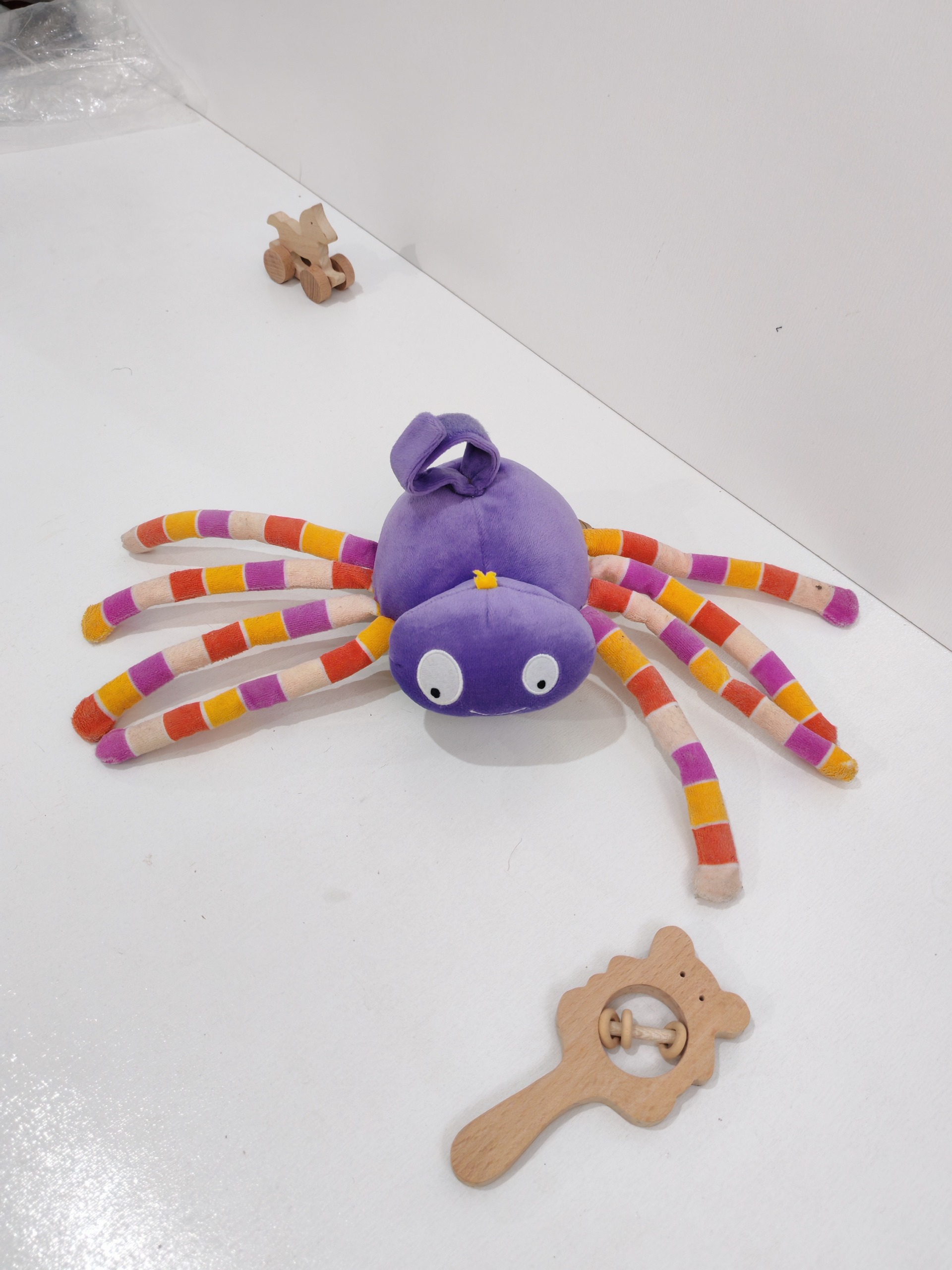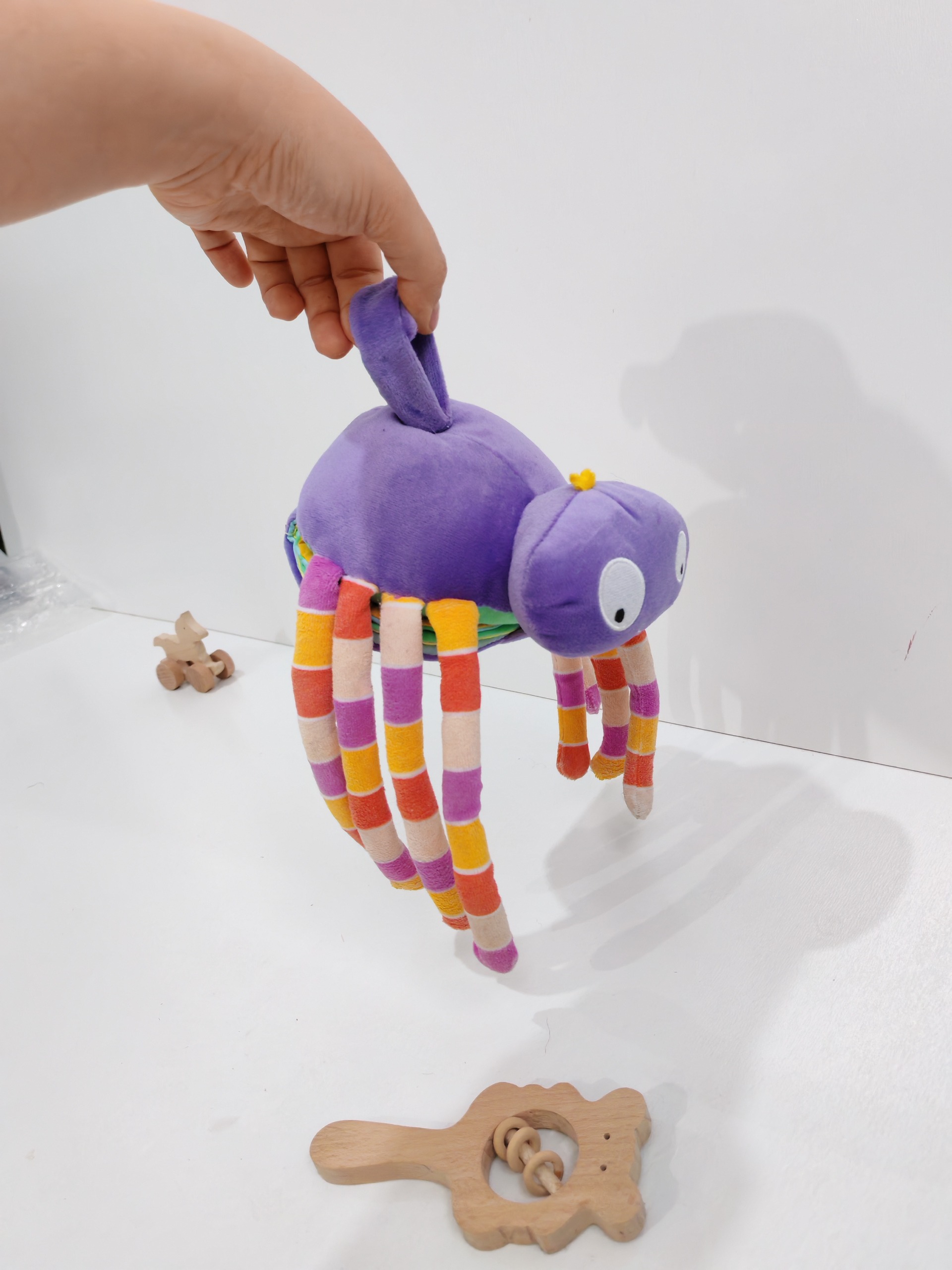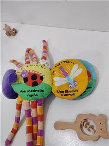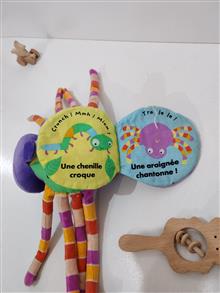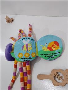 این عروسک خوشرنگ هم یه عروسک آویز بامزه ست هم چند صفحه کتاب پارچه ای با طرح شاد حیوانات و جملات انگلیسی داره و برای کودک بسیار سرگرم کننده هست