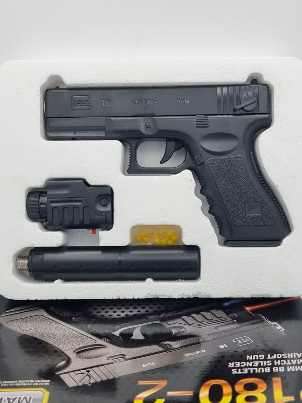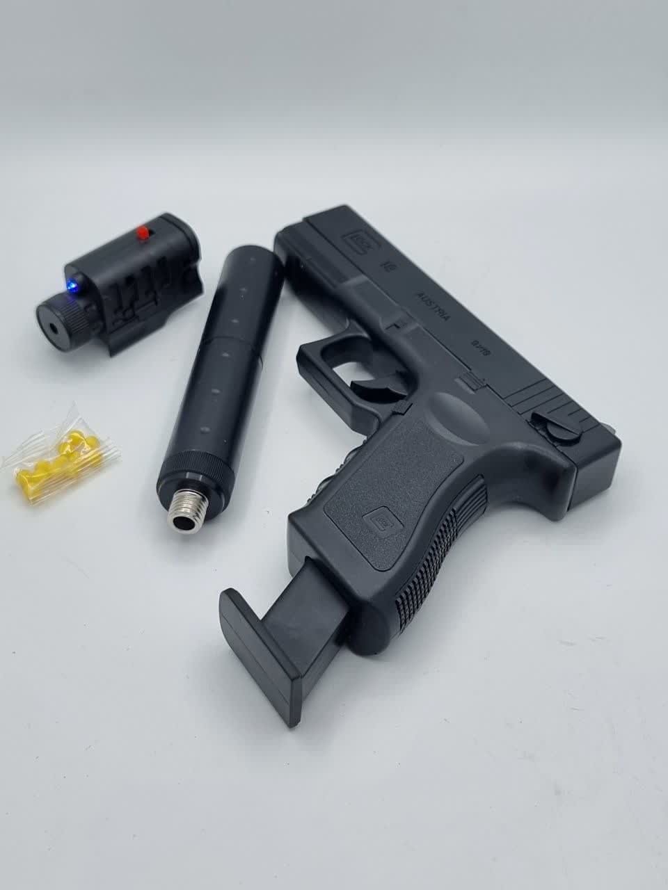 تفنگ ساچمه ای جنس بدنه پلاستیک مقاوم لوله شلیک فلزی صدا خفه کن داره و لیزر هم داره برد تقریبا 15متر و قدرت شلیک بالایی داره