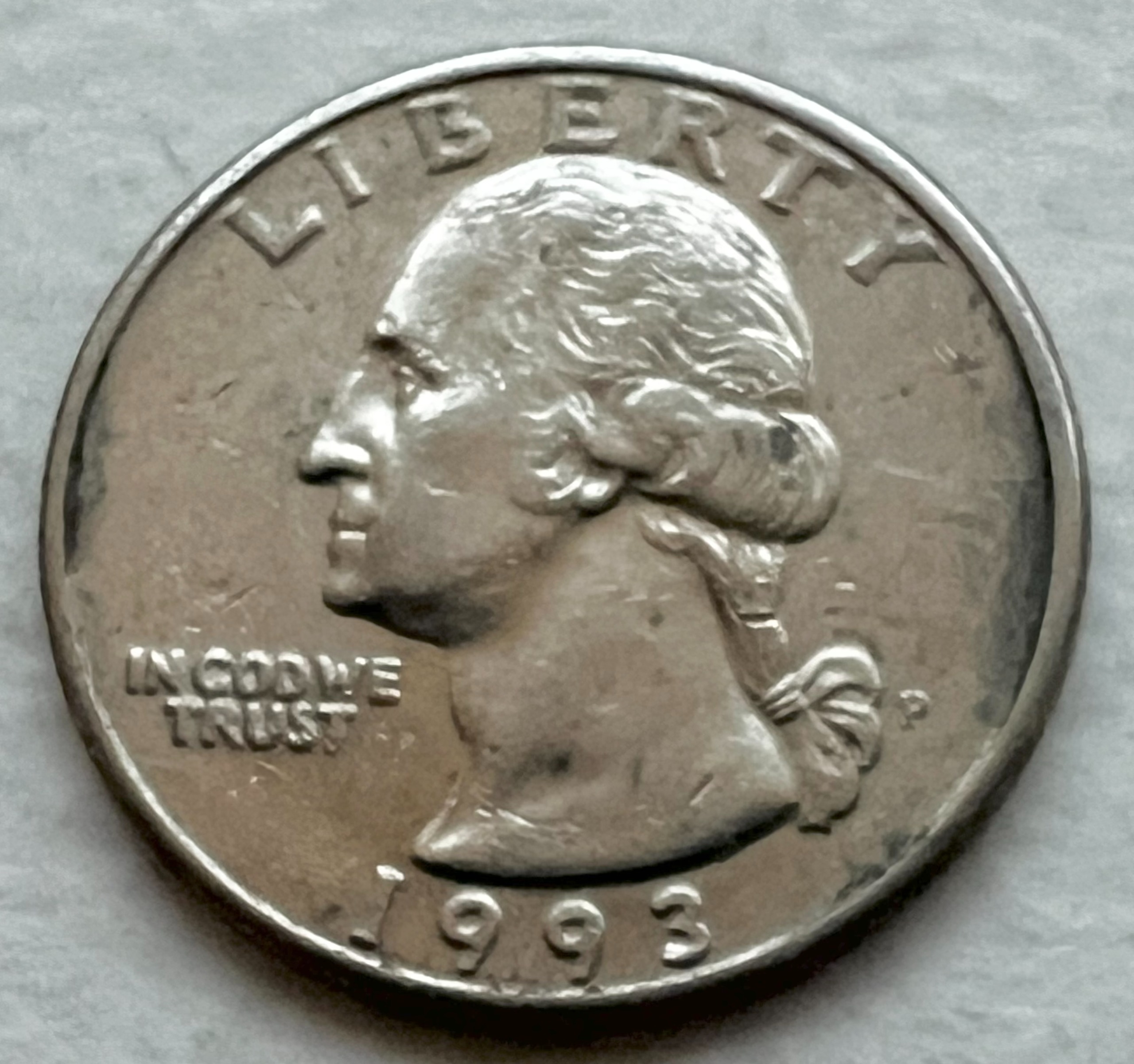 کوارتر دلار (1/4) آمریکا / طرح قدیم / ضرب سال 1993 میلادی / تک سکه / تایپ P / «فی عالی و مقطوع»