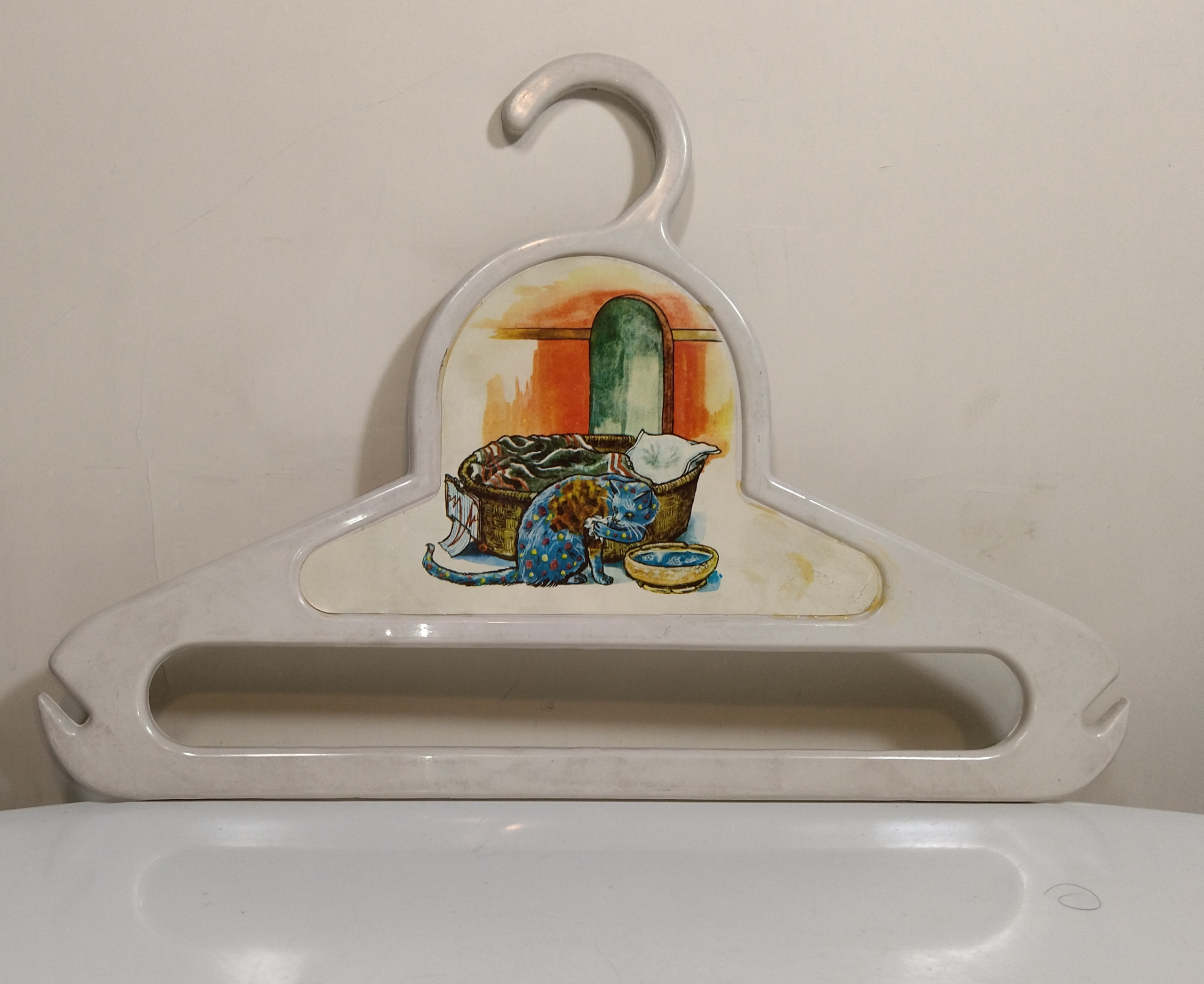 چوب لباسی پلاستیکی سفید طرح تخت خواب با گربه