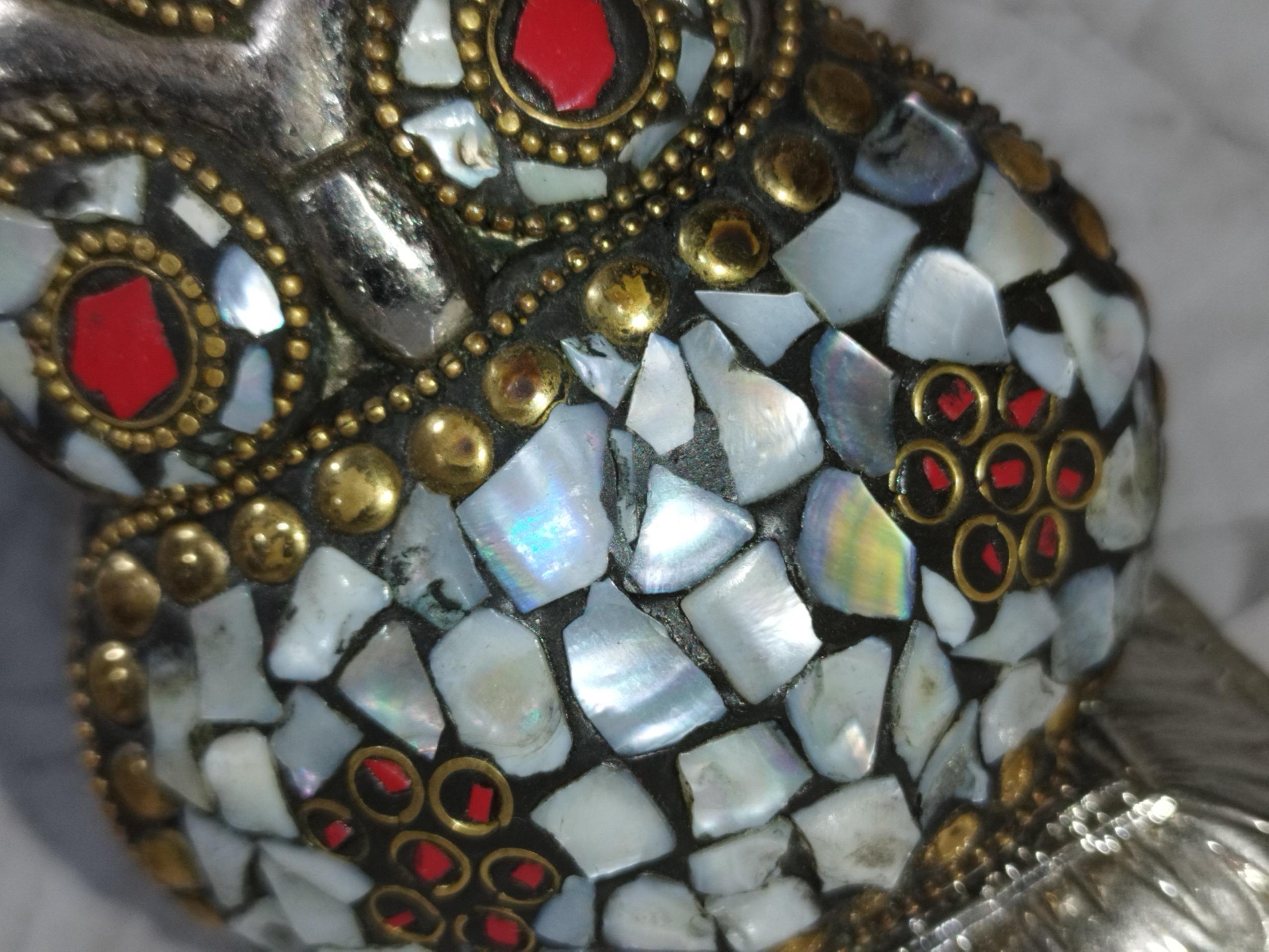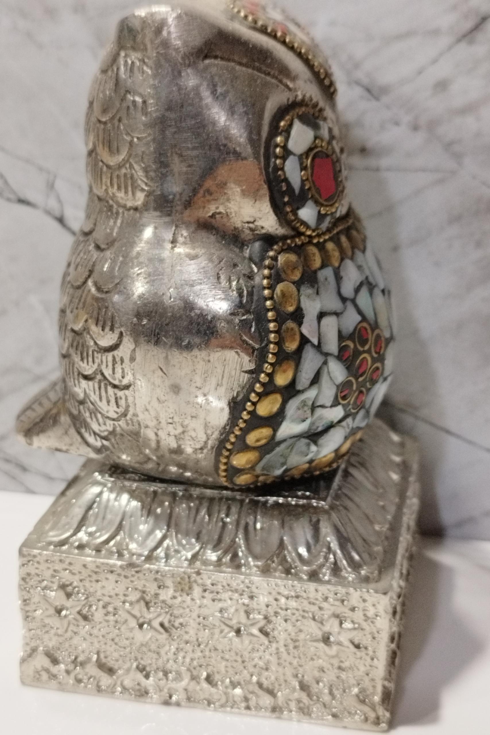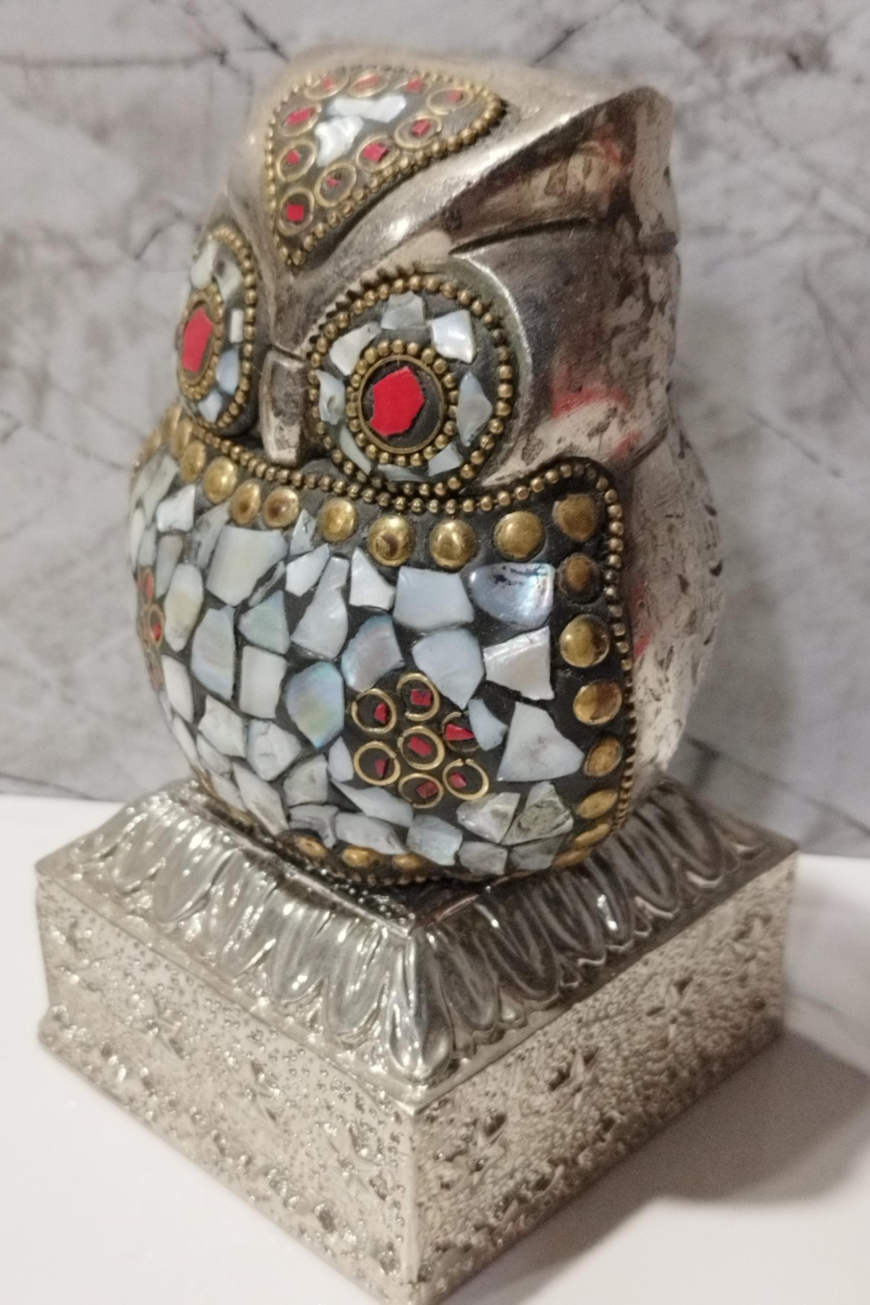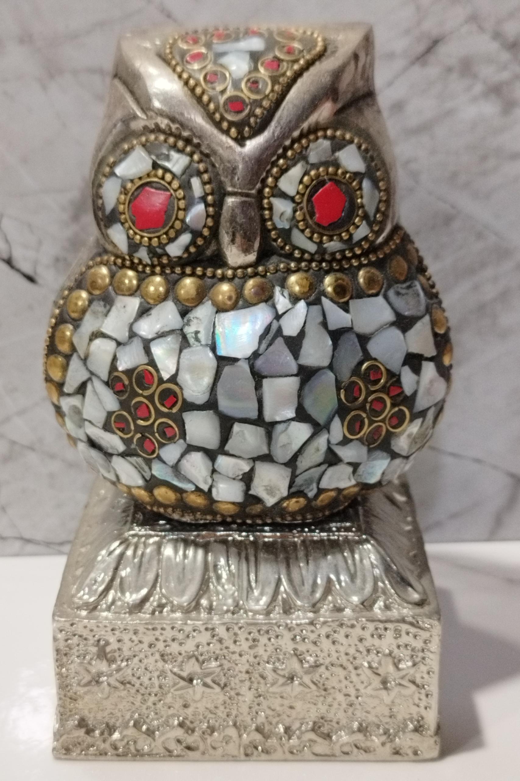مجسمه جغد قدیمی تمام صدف و برنز کوب