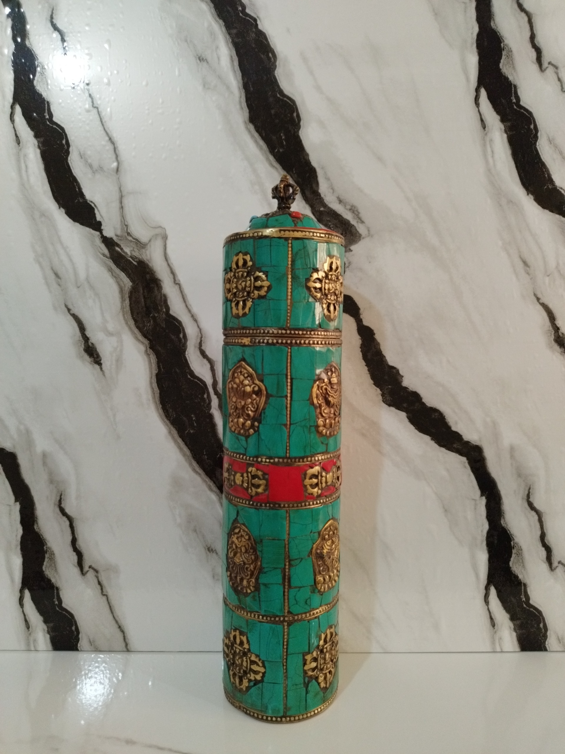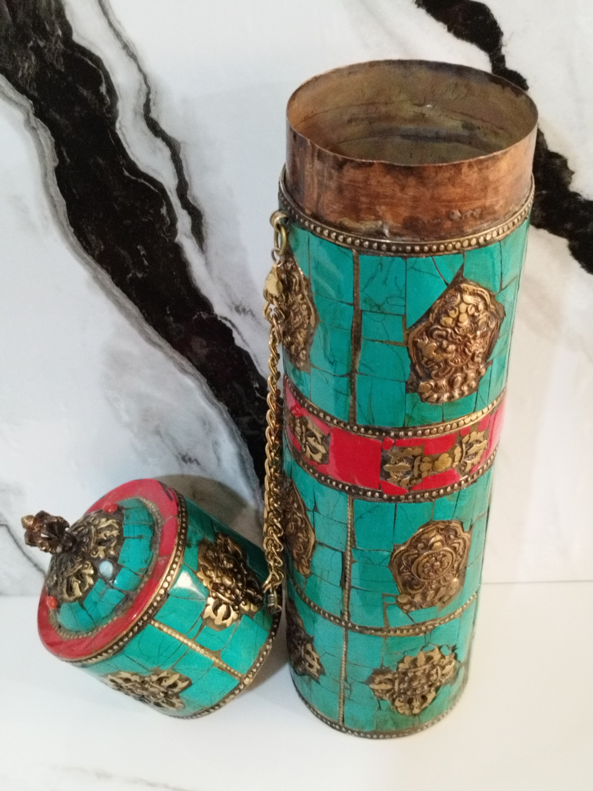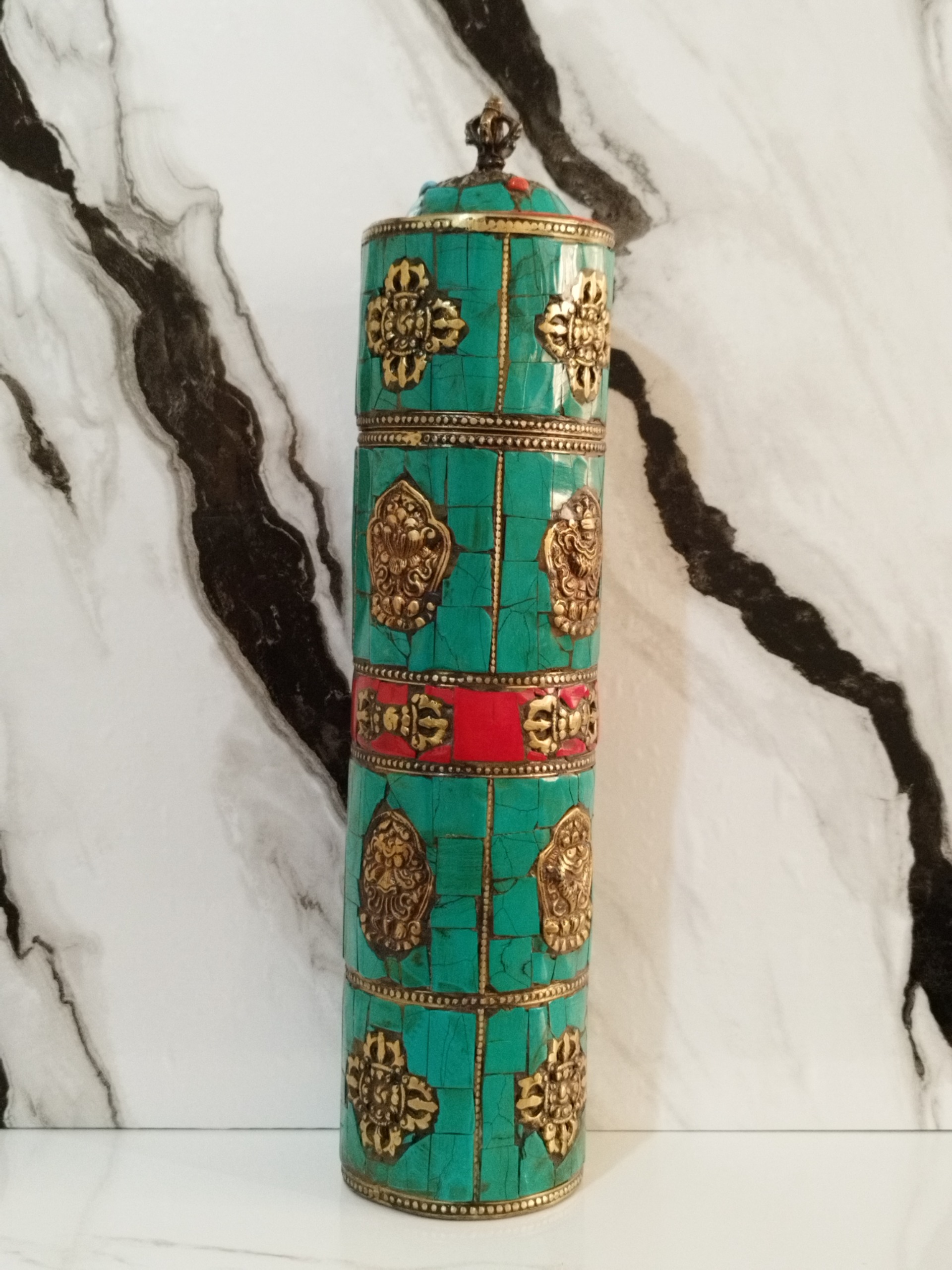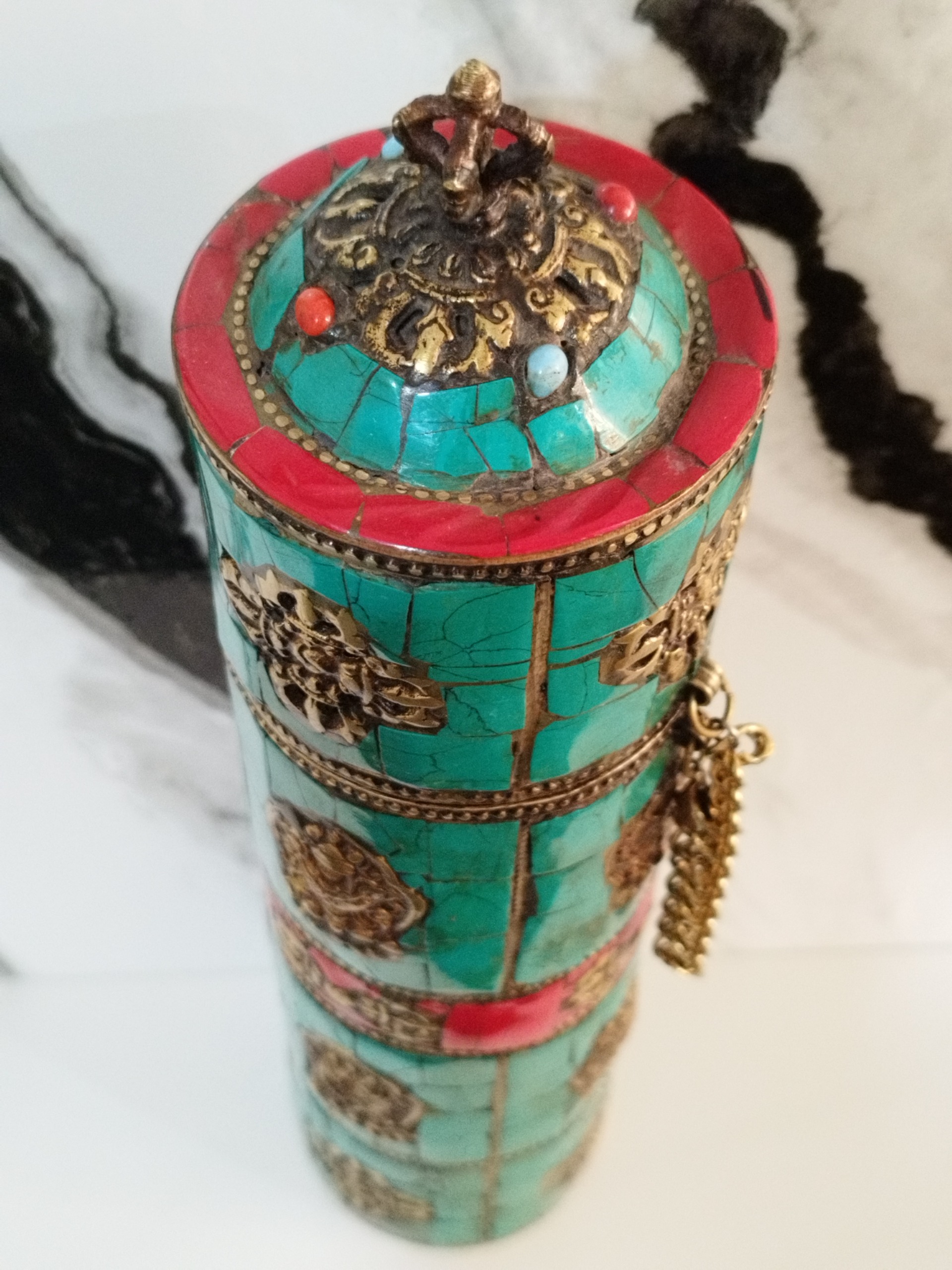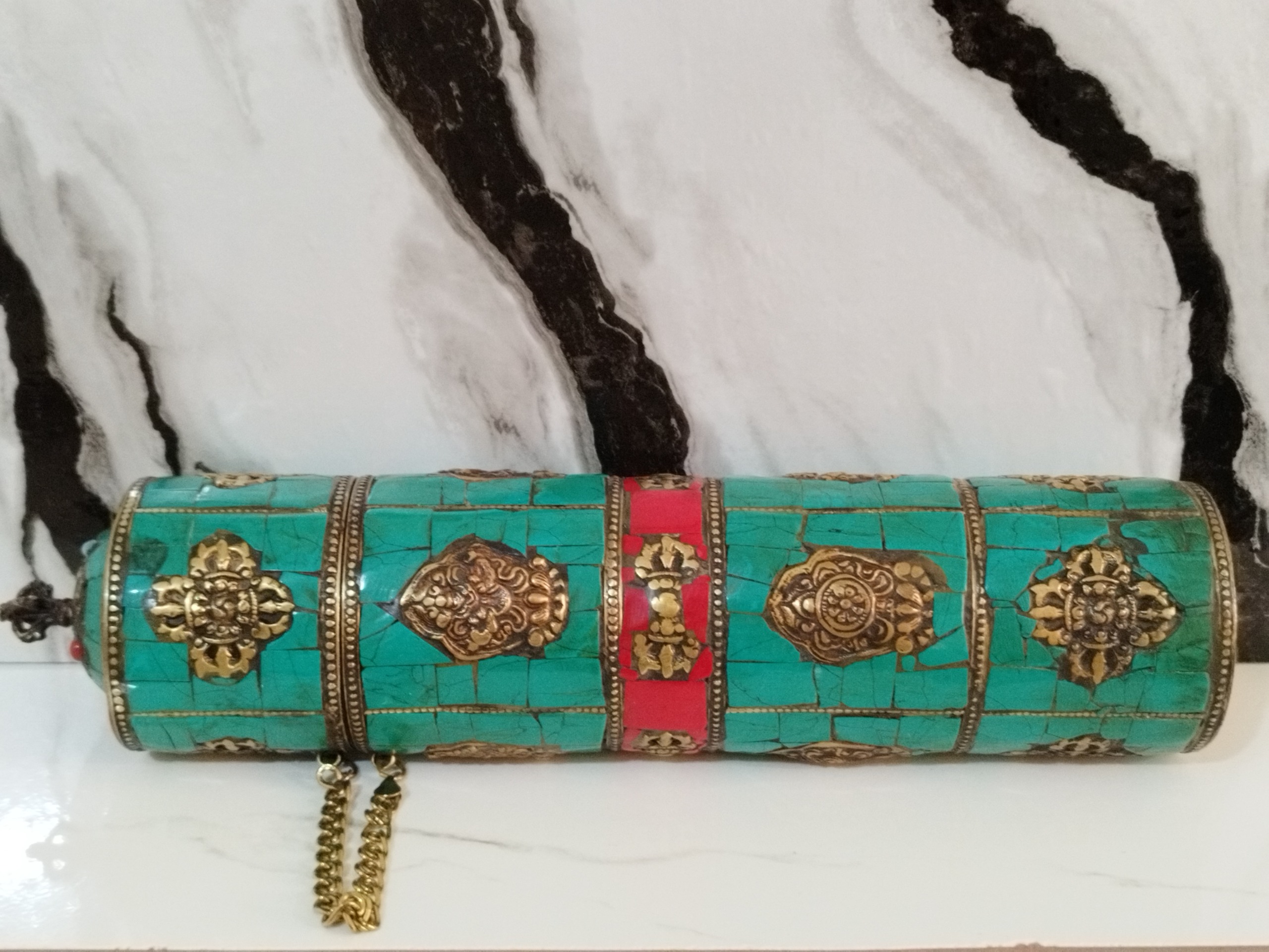 جا فرمانی شاهی قدیمی ،هنر دست تماما فیروزه کاری و مرجان و برنز کوب شده