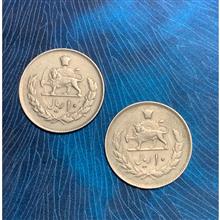 2 عدد سکه 10 ریالی پهلوی دوم سال 1357