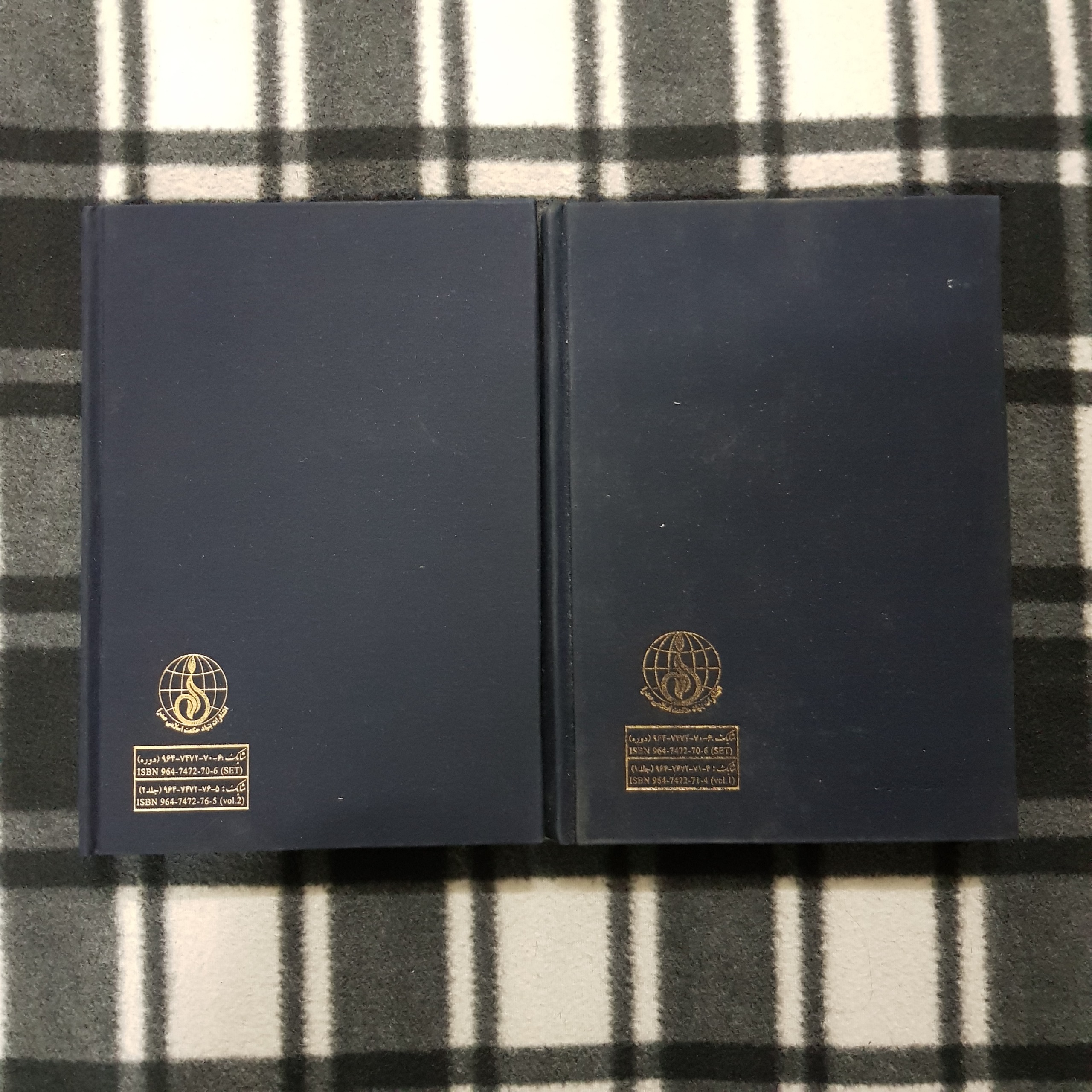 کتابها سالم هستند و فقط جلد آنها کمی اثر گرد و خاک گرفته اند.