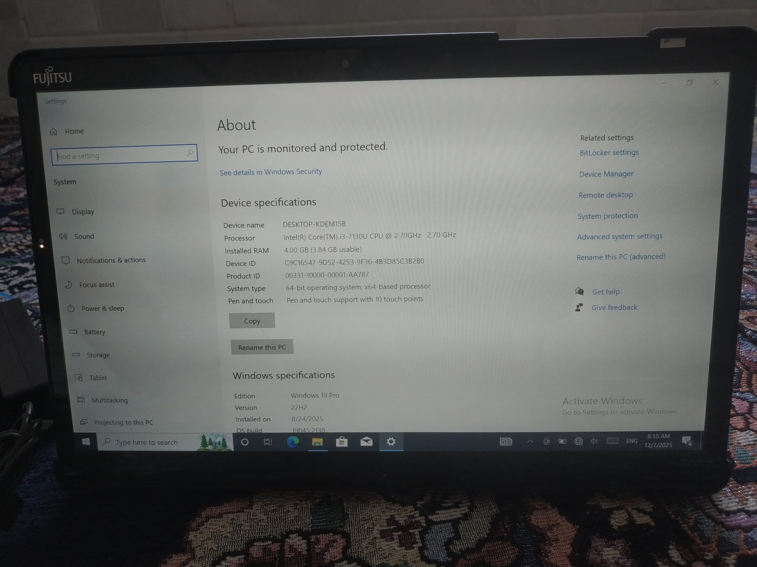 تبلت فوجیتسو q738 نو با چند خش جزئی