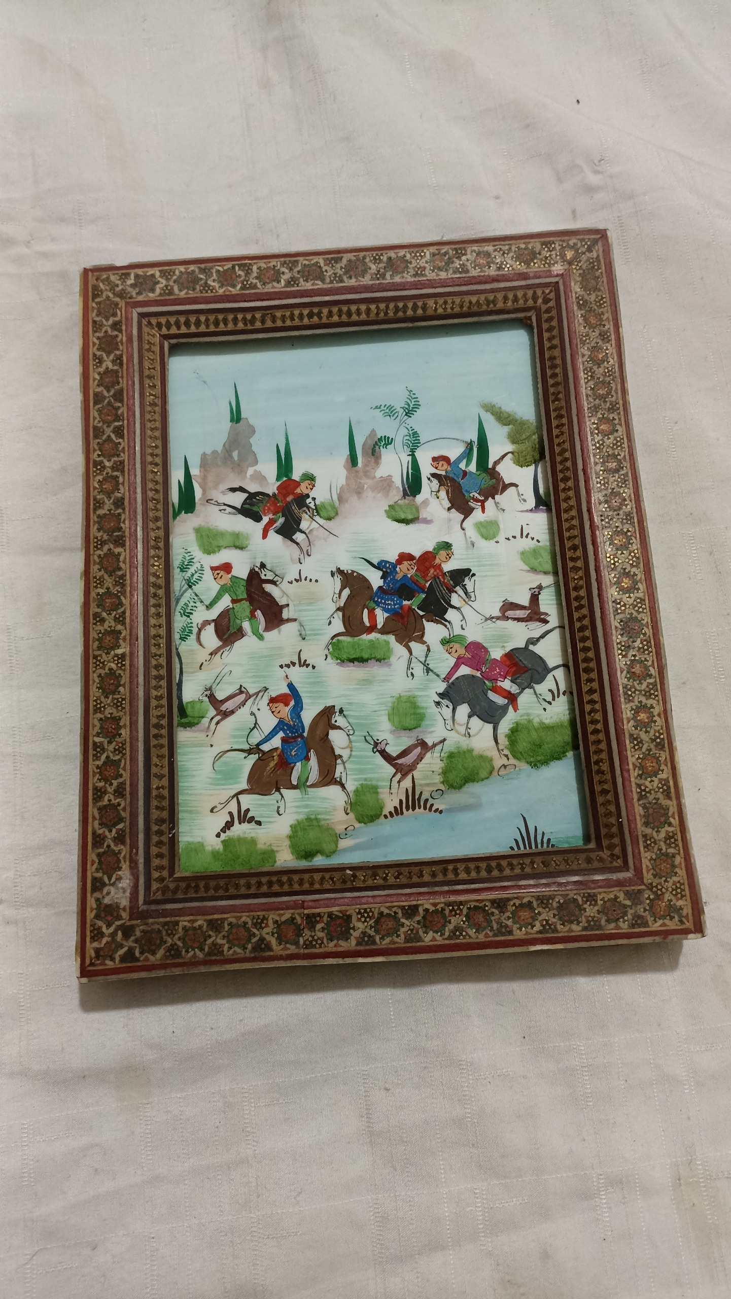 تابلو قدیمی نقاشی دست با خاتم کاری