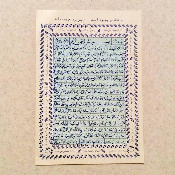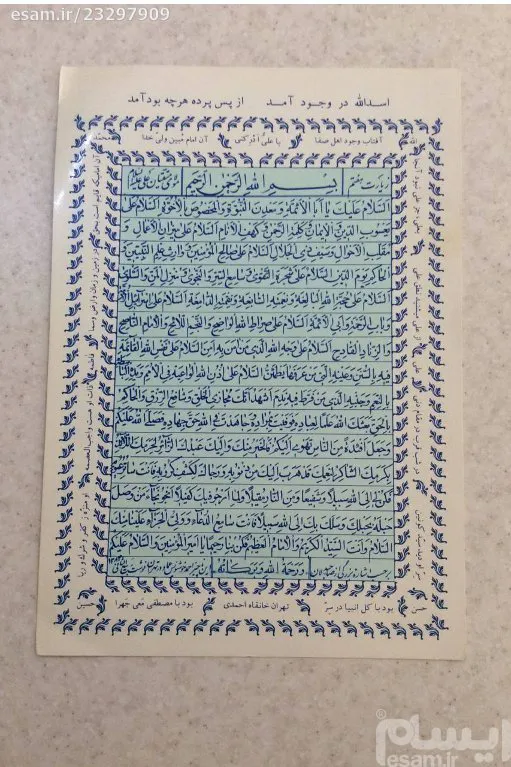 ورق دعای مقوایی دهه چهل شمسی