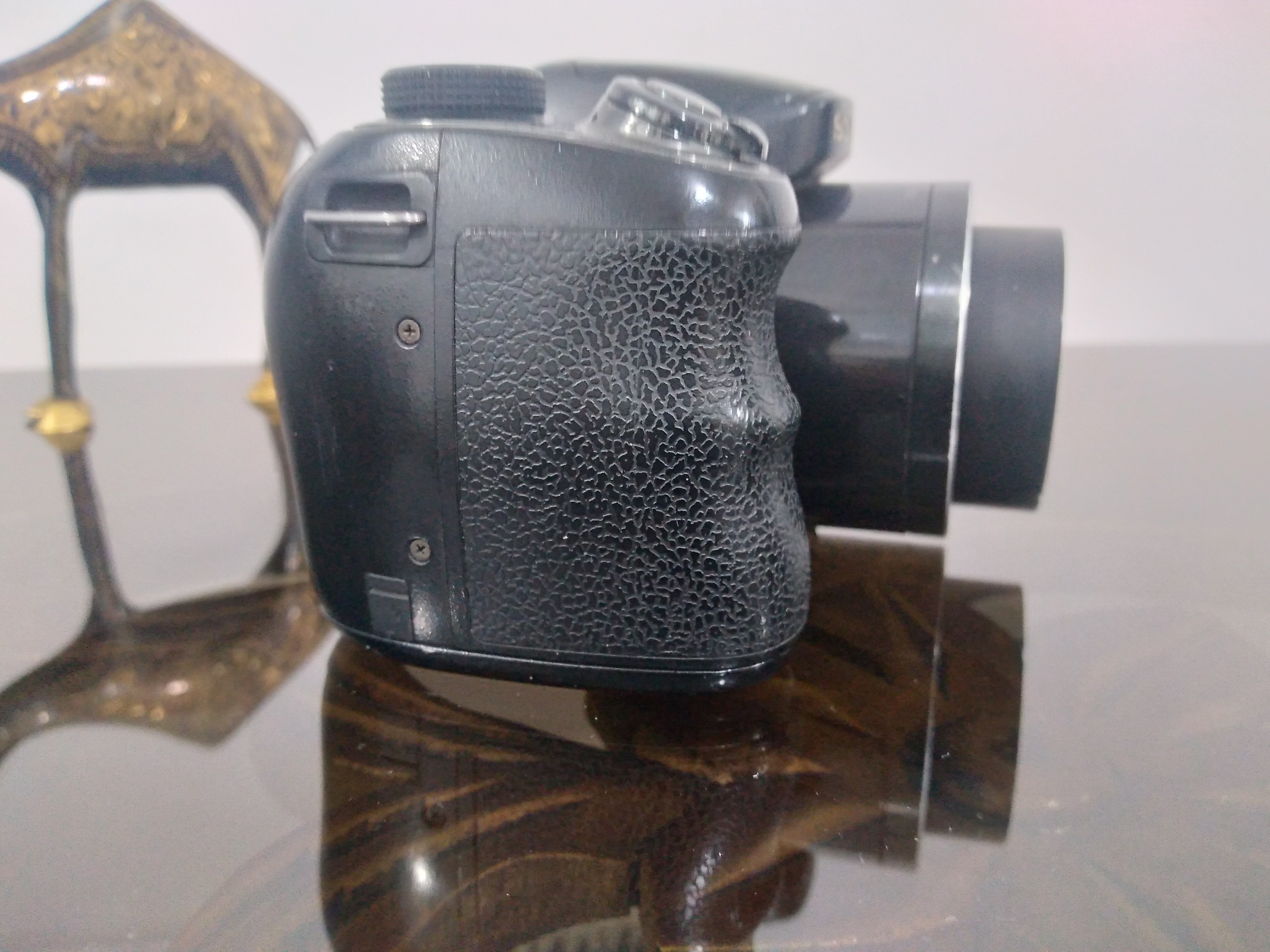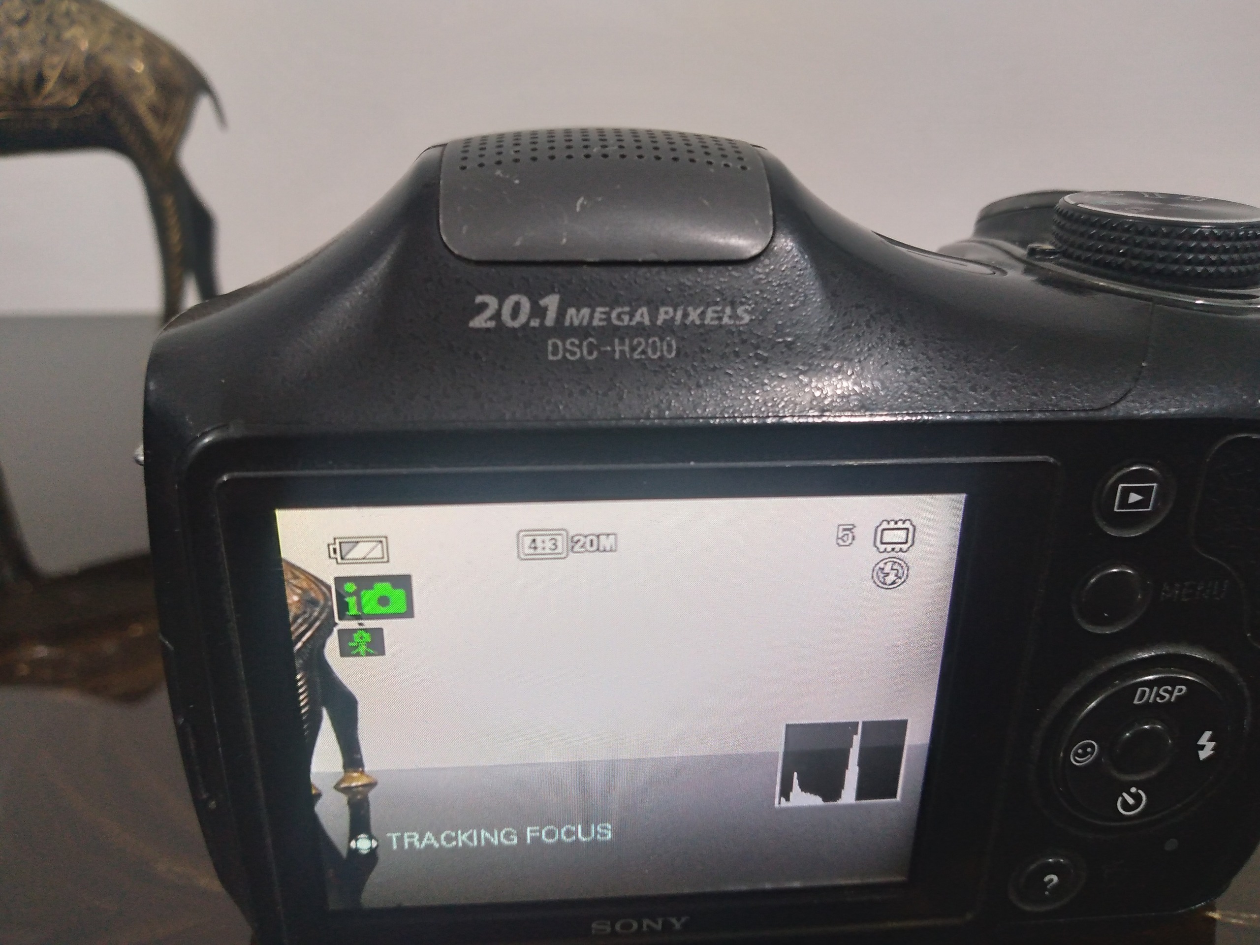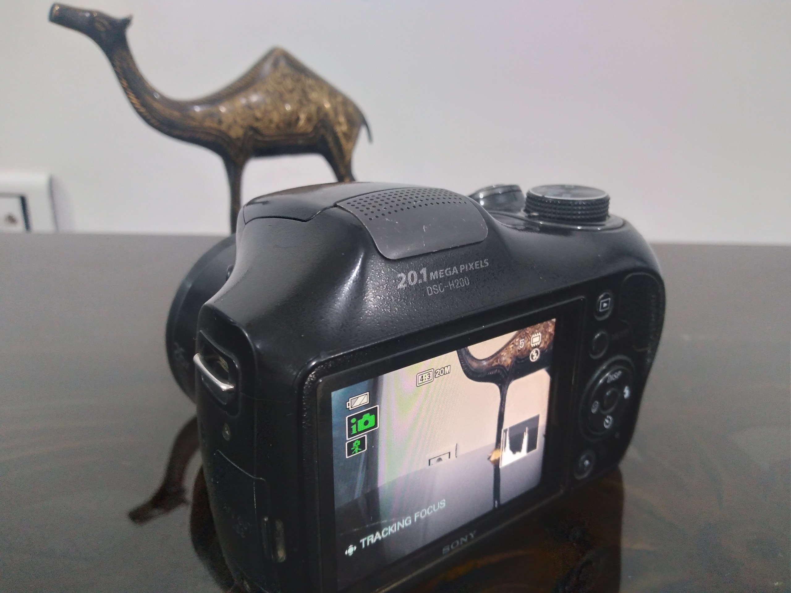 دوربین h200کاملا سالم وتمیز.بدون لوازم .چهارتا باتری شارژی میخوره .مقداری رنگ پریدگی روی شاترعکس دارد.