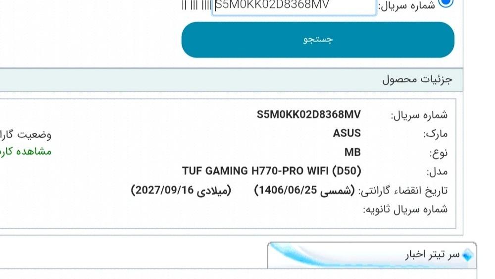 مادربرد نسل ایسوس asus Tuf gaming H770-pro wifi