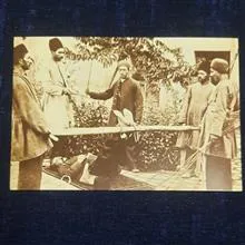 کارت پستال مجازات با چوب و فلک در دوره قاجار