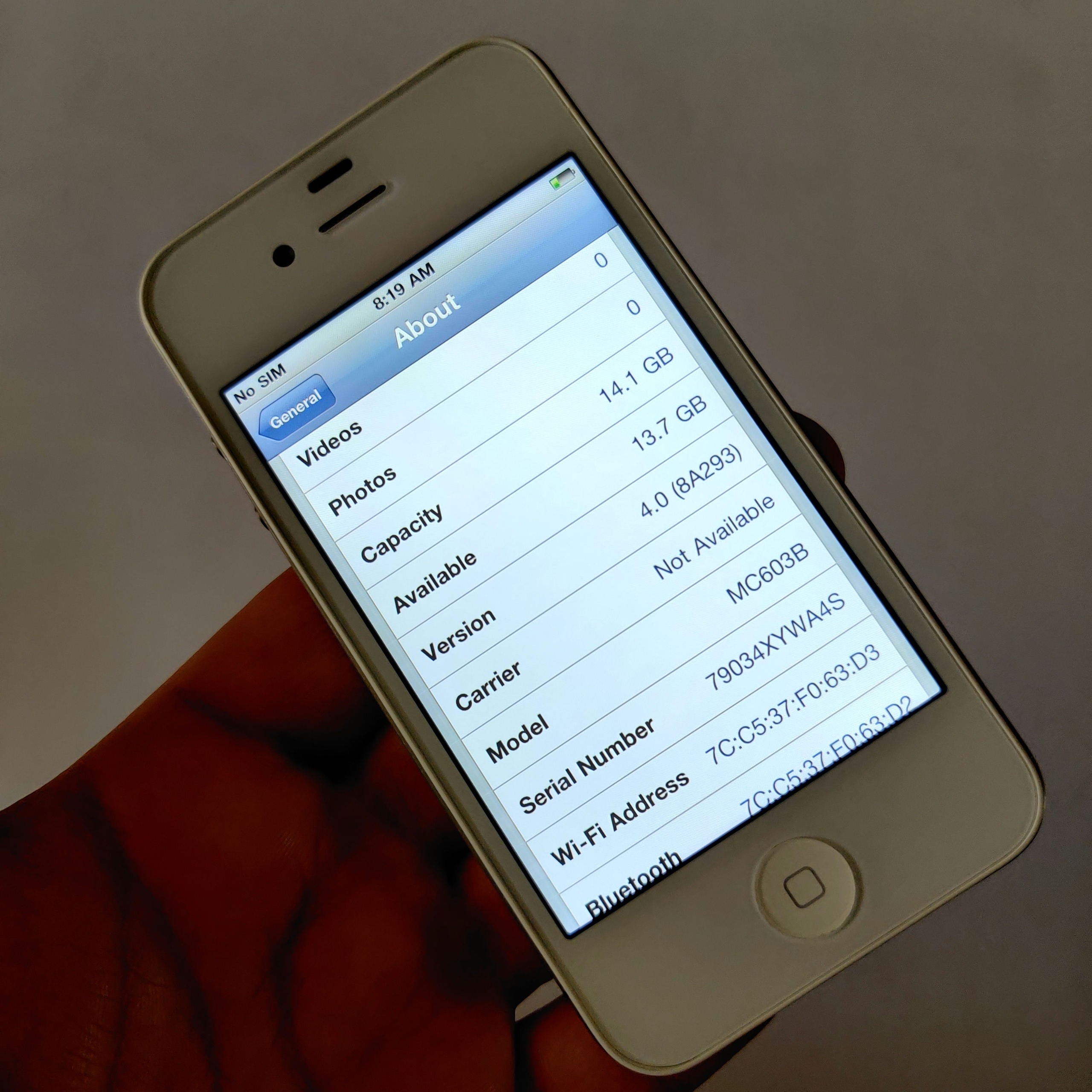 گوشی ios 4 میباشد که همان ورژنی میباشد که آیفون 4 باهاش معرفی شده و فوقالعاده کمیاب میباشد شاید تو دنیا چند تا بیشتر از نباشه و الان تمام آیفون 4 ها به ios 7 بروزرسانی شده اند و گوشی فوقالعاده خاص و کلکسیونی و کمیاب میباشد.