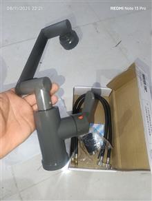 شیر آب هم برای روشویی هم ظرفشویی اهرمی چرخشی 360درجه جنس داخل برنج جنس رویه یو پی وی سی با تمام متعلقات