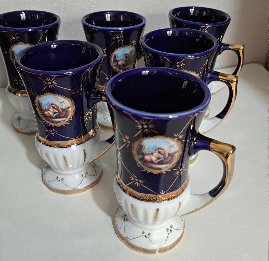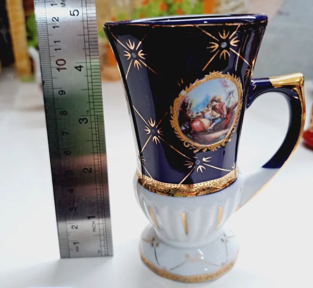 فنجان چایخوری سرمه ای طلاکوب نو