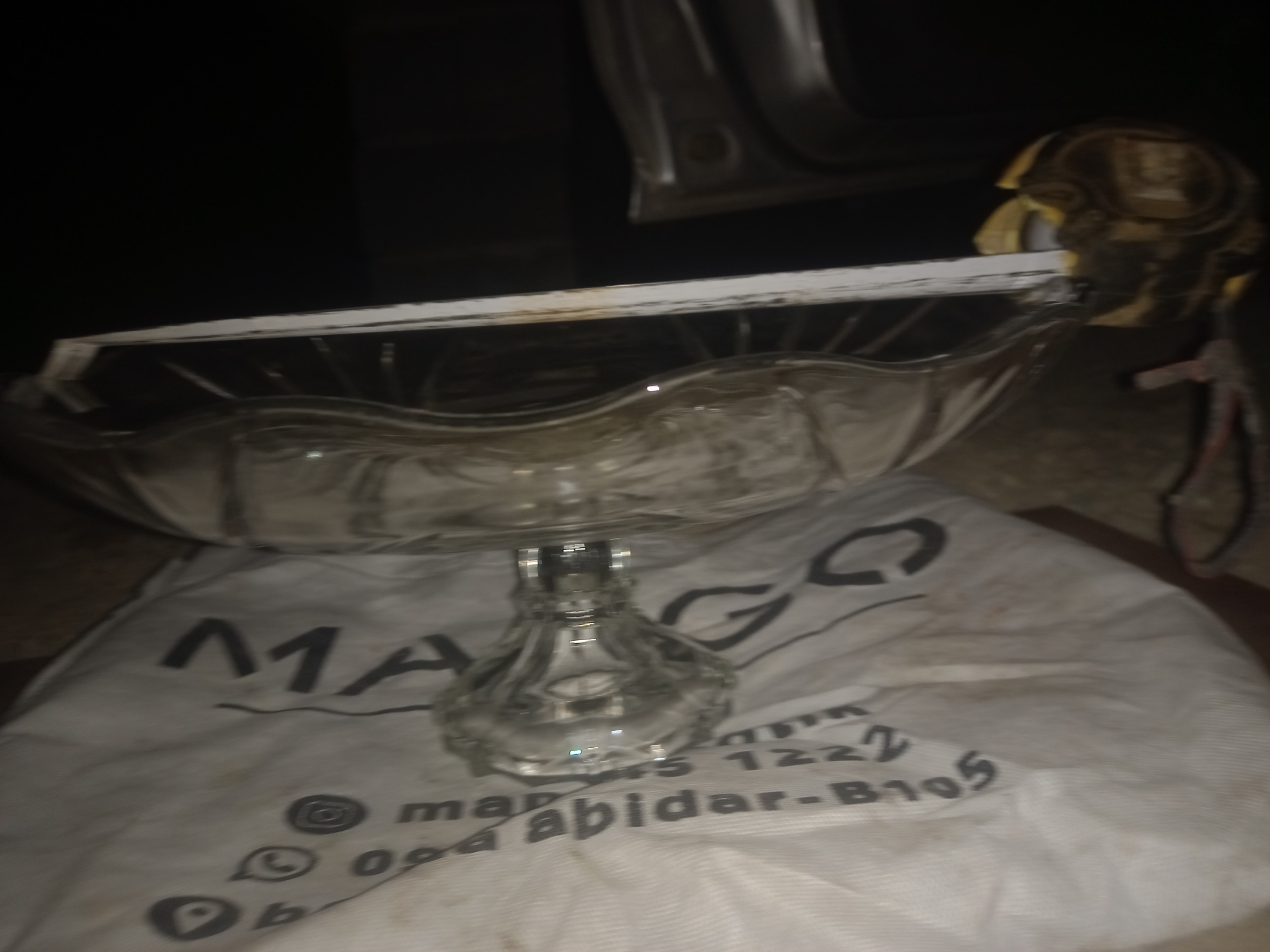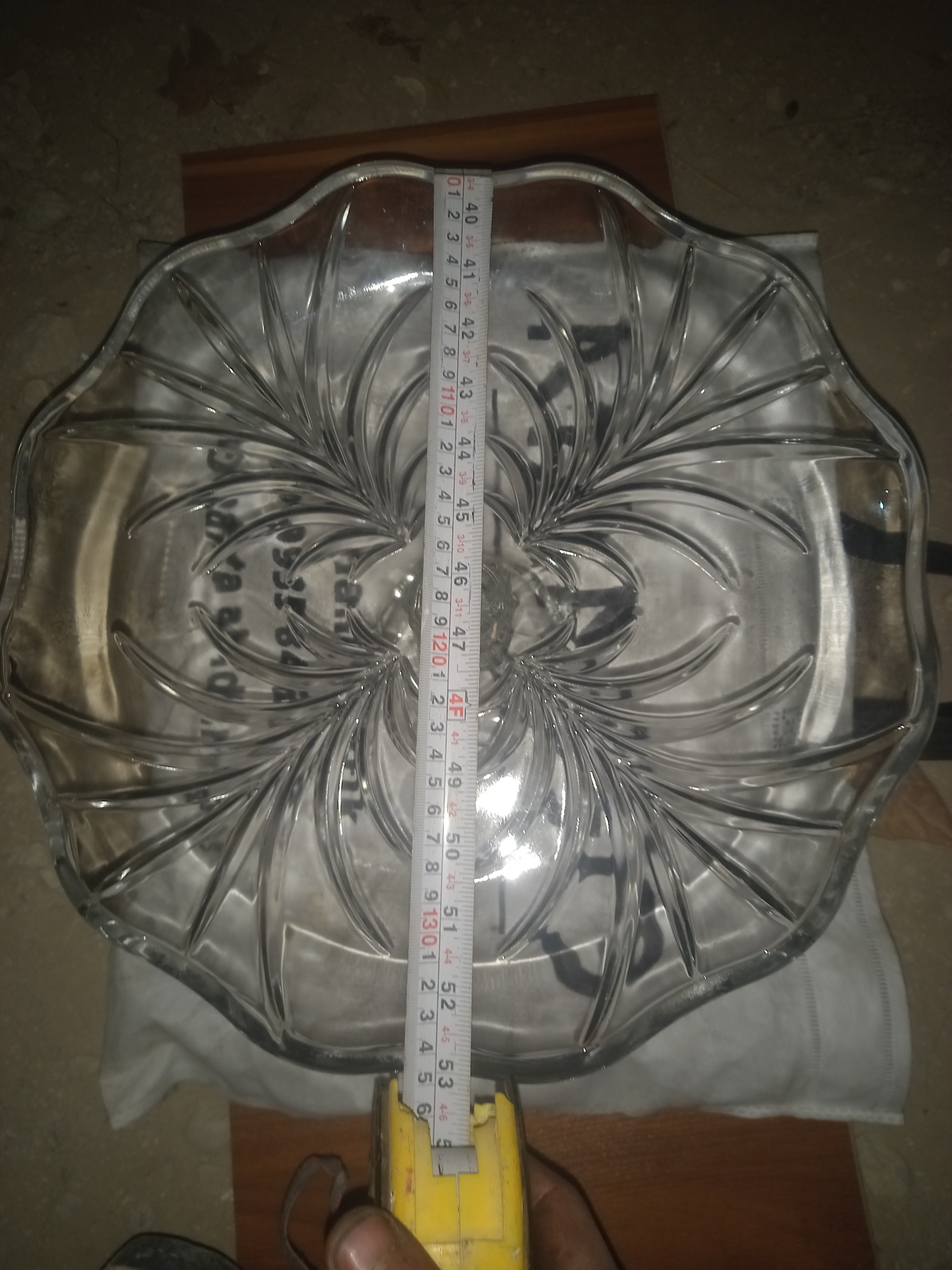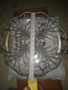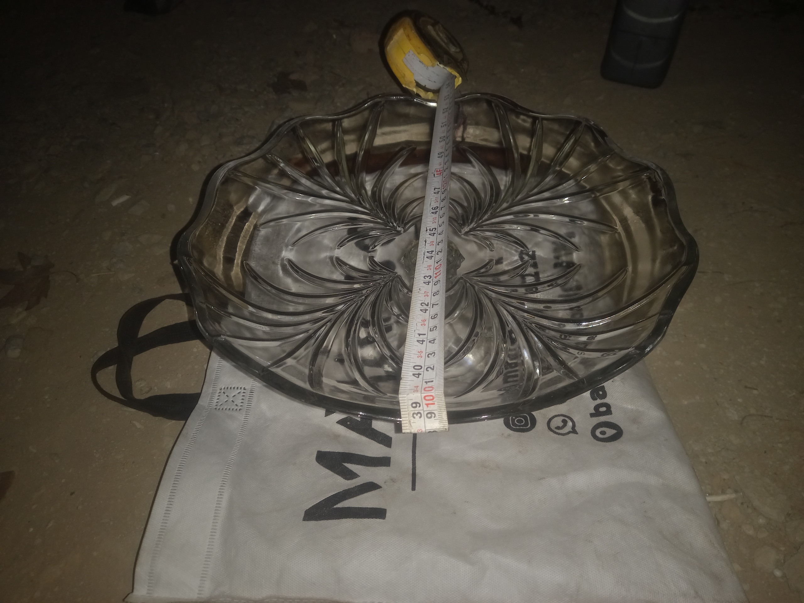 ظرف میوه خوری کریستال بزرگ،یک انتخاب شیکوزیبا،لاکچری برای پذیراییهاومهمانیهای شماست.باظاهری شفافوطرح دانه برف به شعاع 50سانتیمتر میباشدوارتفاع ان 25سانتیمترمیباشدکه نونومیباشد بدون کوچیکترین ایرادی وتاحالااستفاده نشده است.