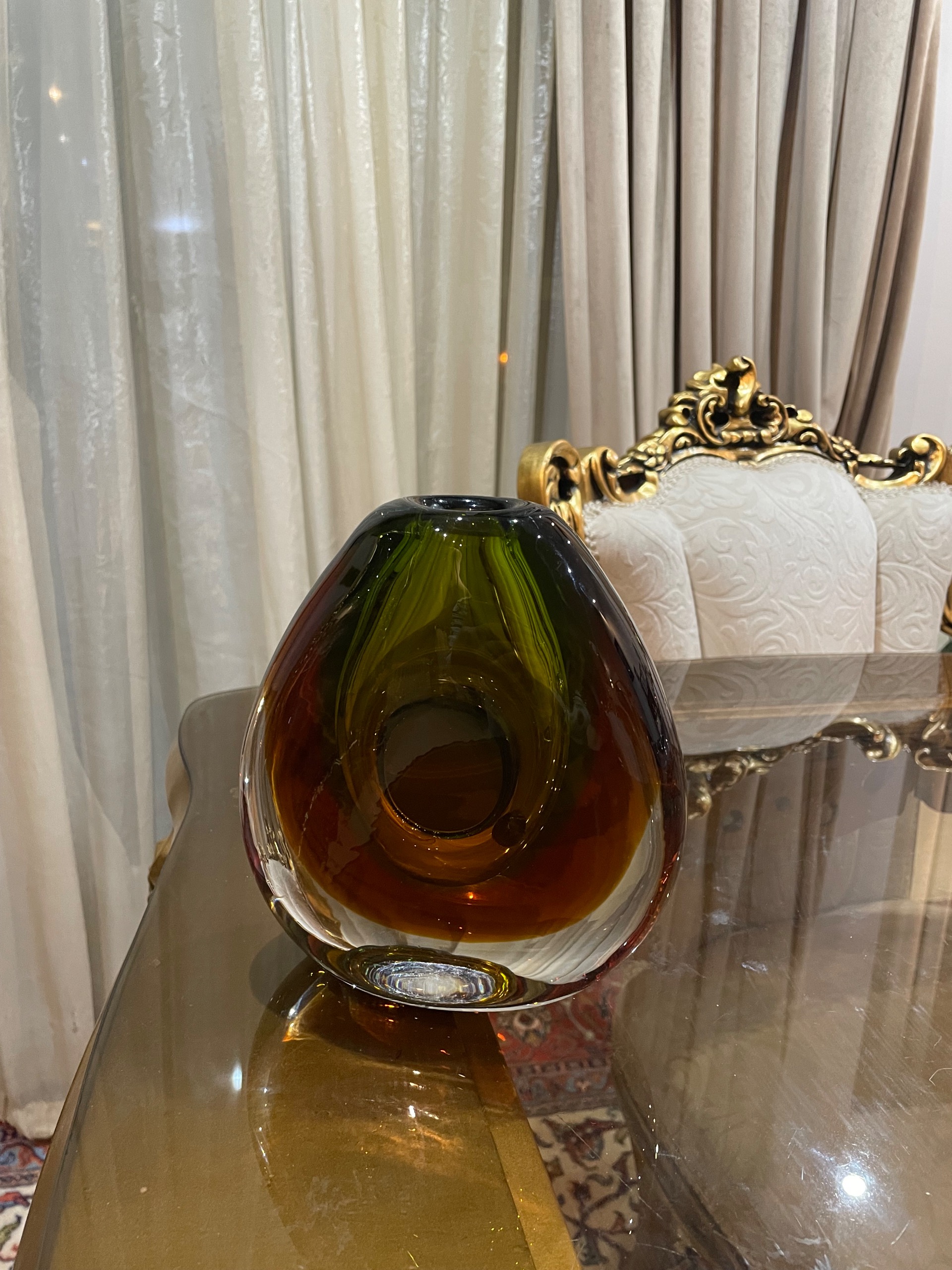 Heading :Scarce moser ovoid green and amber sommerso vase designed by Vladimir Mika .