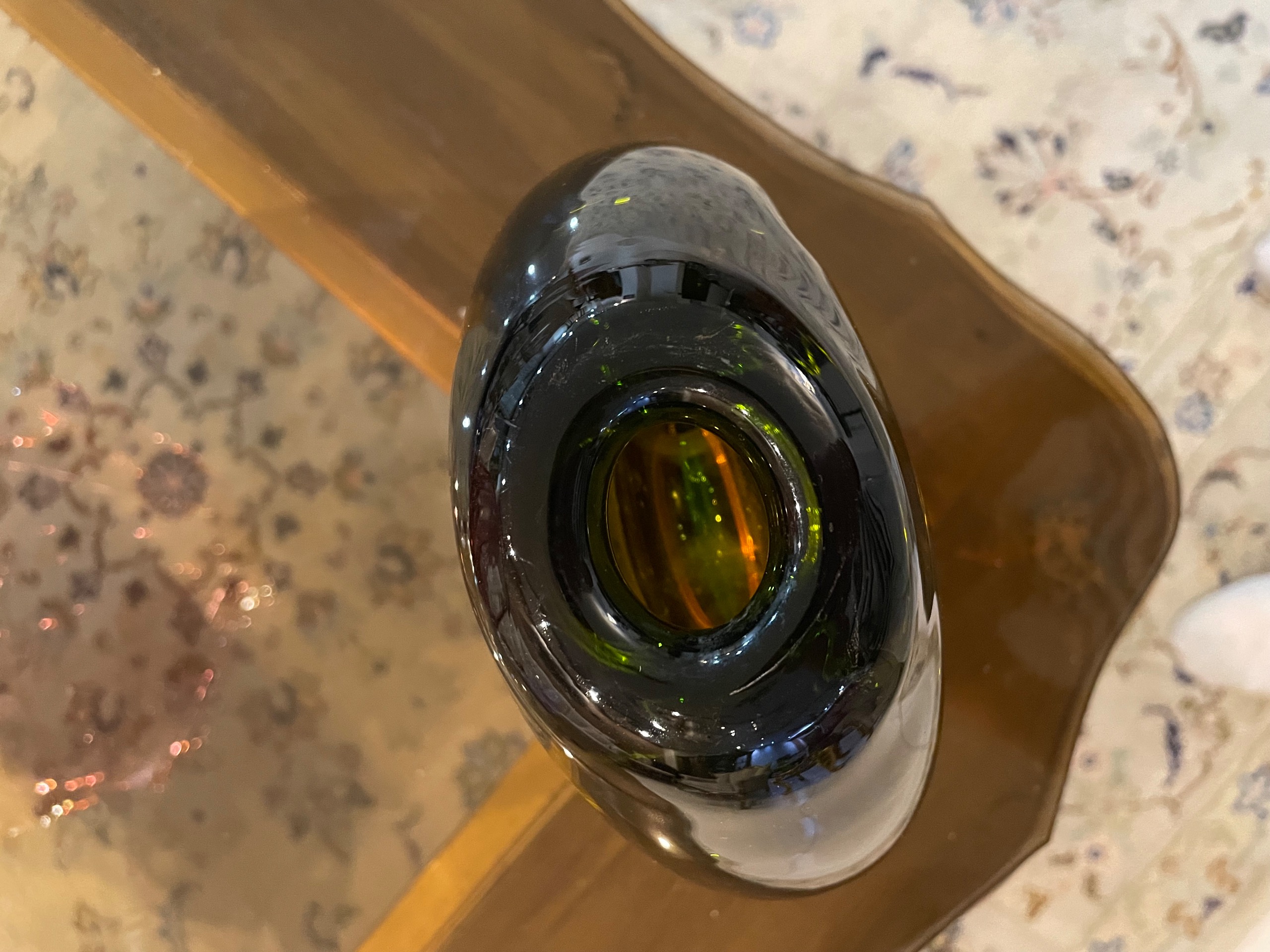 Bowl Features : Amber and green sommerso with the two faces adjoined by a solid inner blue ring of blue glass.