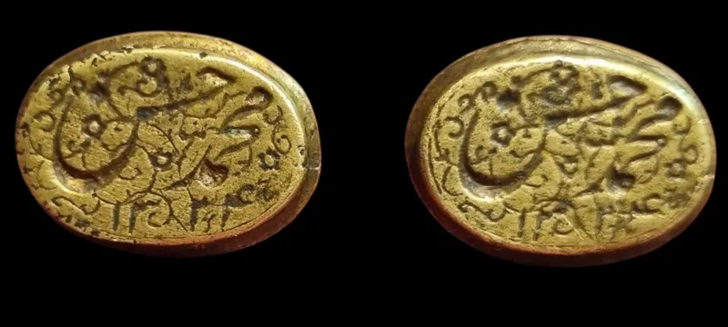 دو مهر برنجی قاجاری محمد حسن سنه 1324 ه ق سایز: 2 در 1 در 2 س م