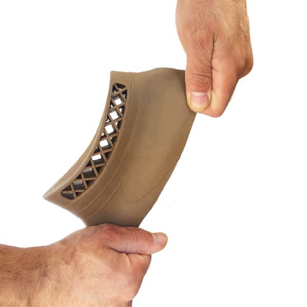 اگر اسلحه شما لگد زیادی دارد یا نمی توانید لگد اسلحه را در تعداد تیر بالا تحمل کنید پیشنهاد می کنیم که از این کفشک ضربه گیر برای سلاح خود استفاده کنید تا به قسمت جلویی سرشانه شما آسیب نزند.به علت کشی بودن این کفشک بر روی تمامی قنداق ها قابل نصب می باشد .