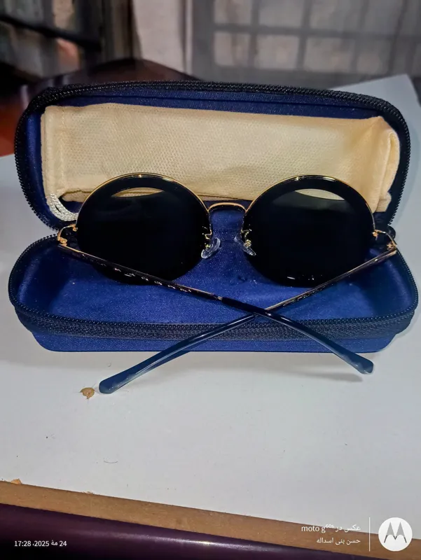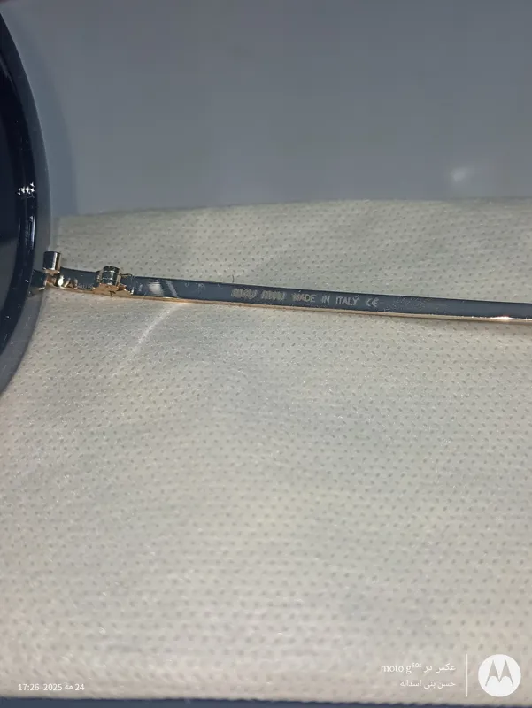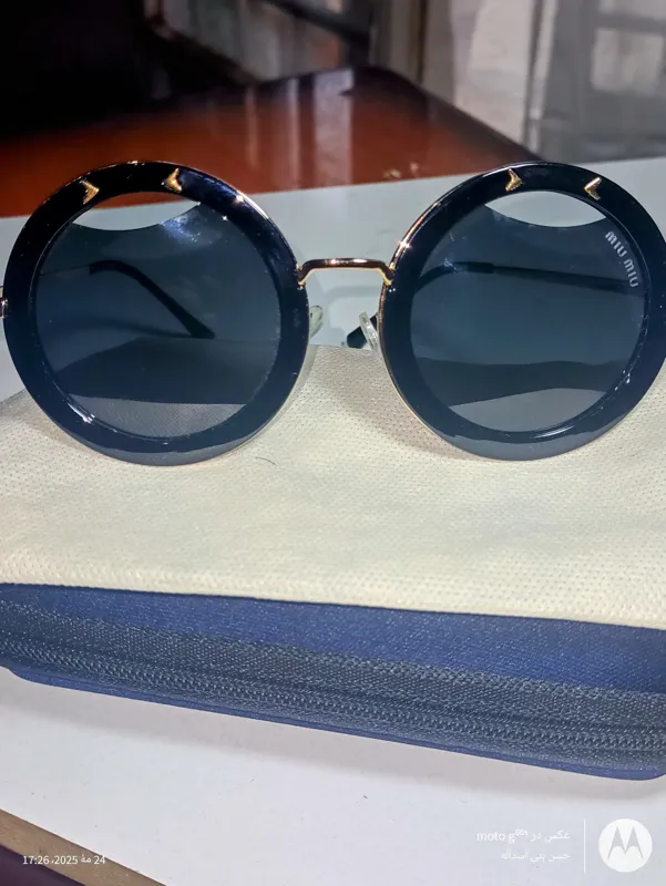 عینک آفتابی مشکی گرد زنانه مارک میومیو با حک میومیو روی عدسی ودسته و شماره سریال و ساخت جنس بدنه و دسته از فلز و جنس عدسی از پلی کربنات نشکن و مقاوم دارای یو وی 400 با طراحی منحصر به فرد پلاریزه و دماغی ژلاتینی متحرک مخصوص انواع ورزشهای رو بازو رانندگی در چهار فصل، به همراه کاور پارچهای و کیف به ابعاد ذیل