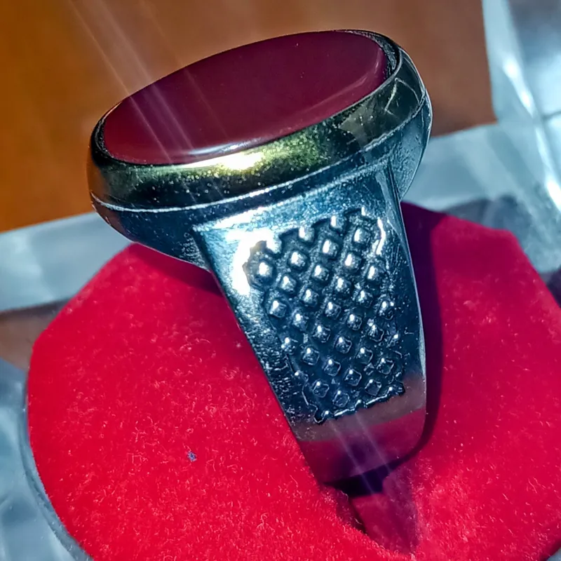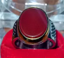 انگشتر وزیری عقیق سرخ با تراش تخت و رکاب بسیار زیبا از جنس