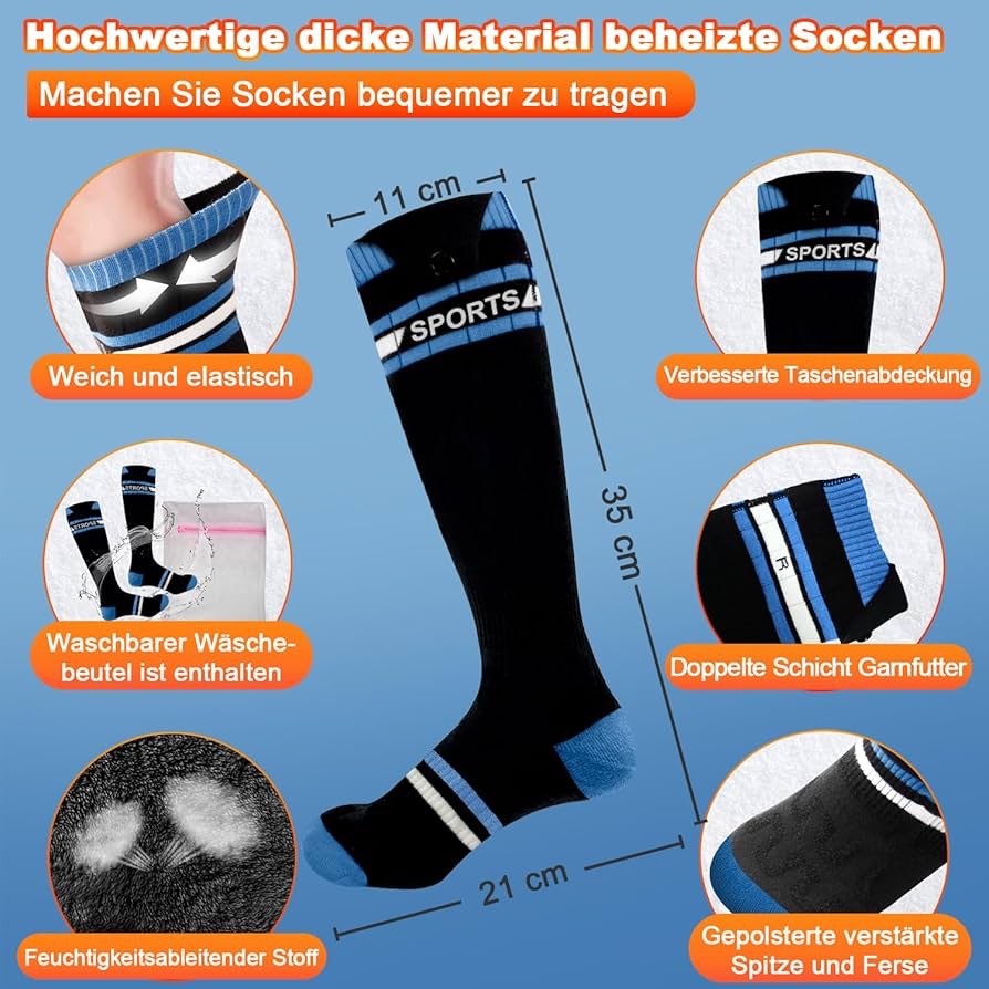 جورابهای گرم شونده، جورابهای گرم شونده، جورابهای اسکی، 5 ولت، 6000 میلیآمپر ساعت، جورابهای گرم قابل شارژ، گرمکن پا با کنترل از طریق اپلیکیشن، جورابهای گرم زمستانی برای آقایان و خانمها