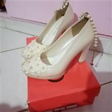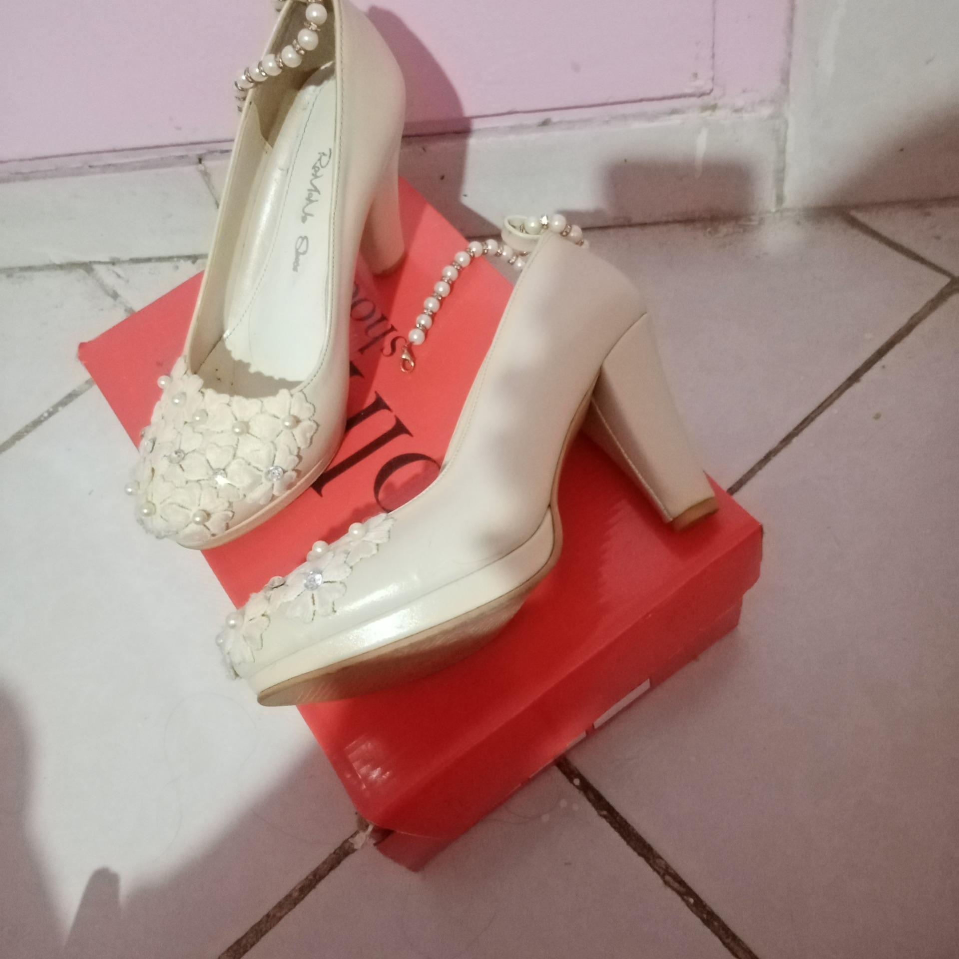 یک جفت کفش پاشنه دار مجلسی سایز 38 زنانه،بسیار شیک، سفید،دارای بند مرواریدی قابل تنظیم،خارجی،یکبار بیشتر نپوشیدمش بفروش میرسد. به خریدار واقعی تخفیف ویژه هم میدهم.