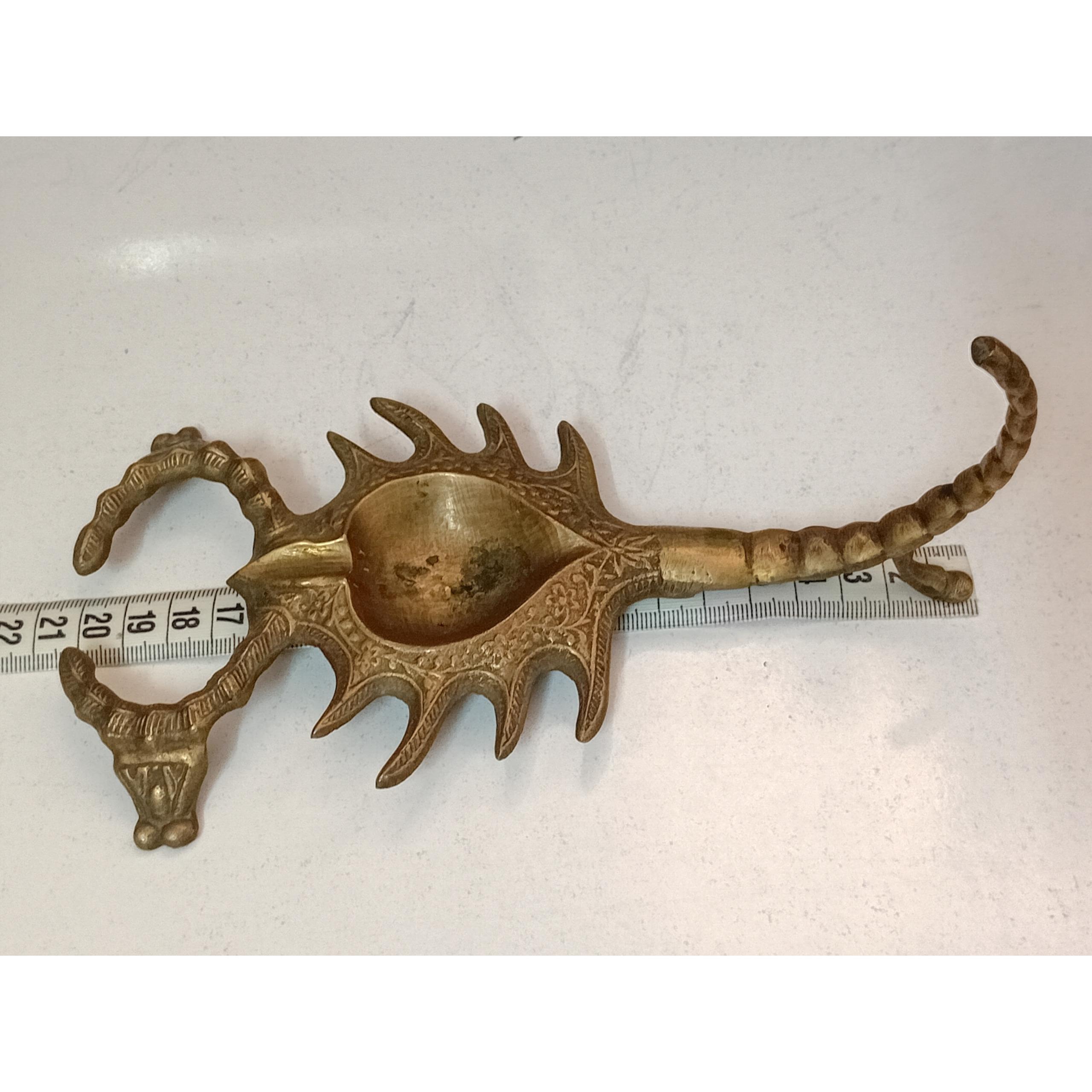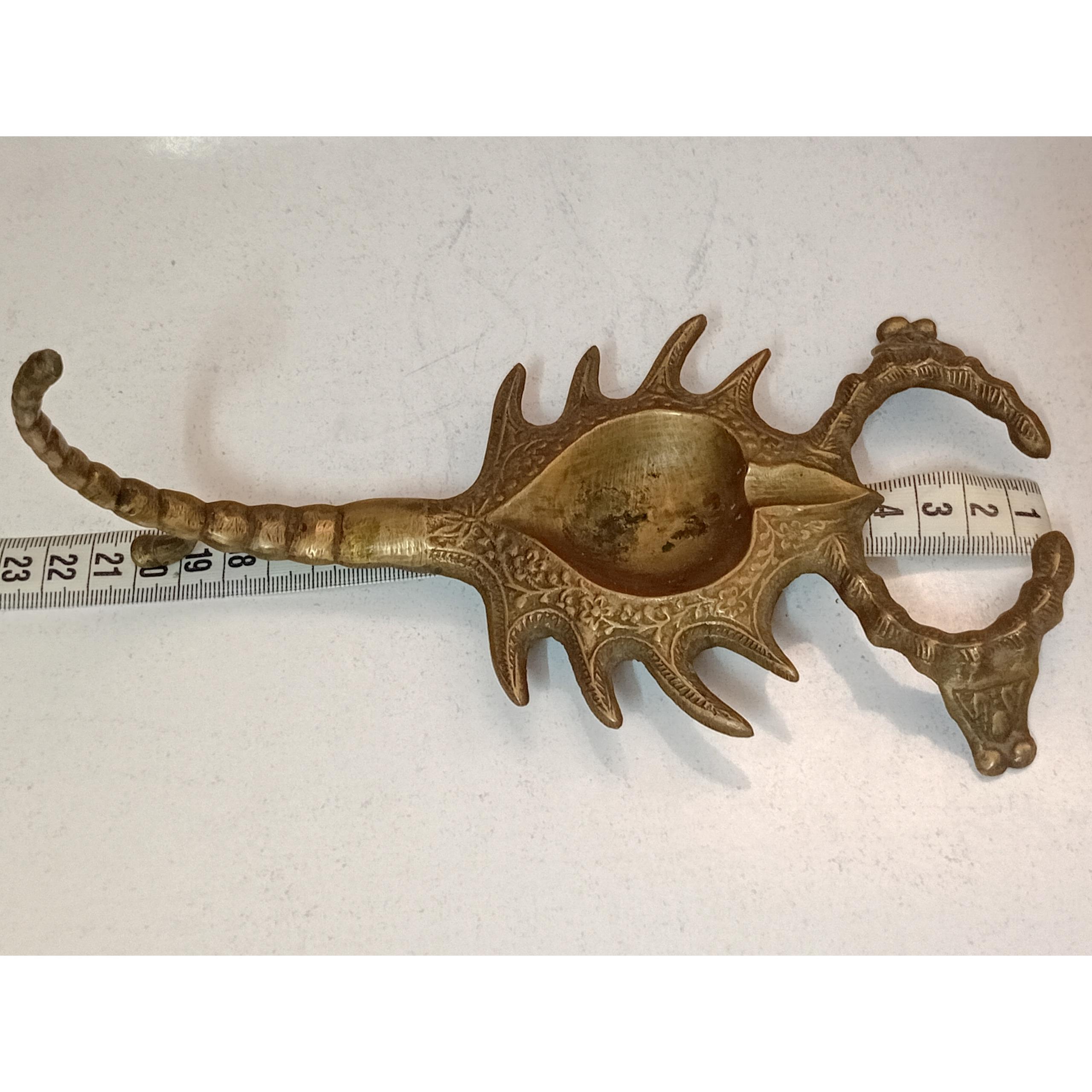 پی سوز قدیمی قلمکاری برنجی طرح عقرب کلکسیونی