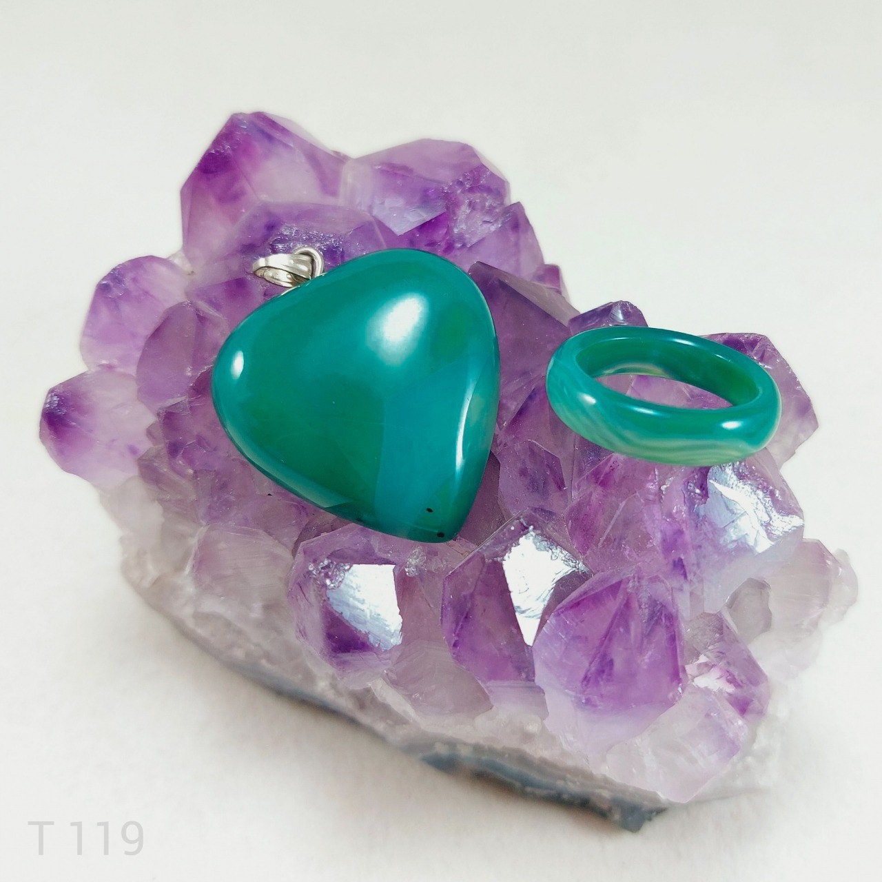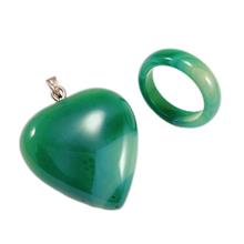 نیم ست بسیار زیبا شامل رینگ یا حلقه تمام سنگ و آویز عقیق سلیمانی سبز قلبی