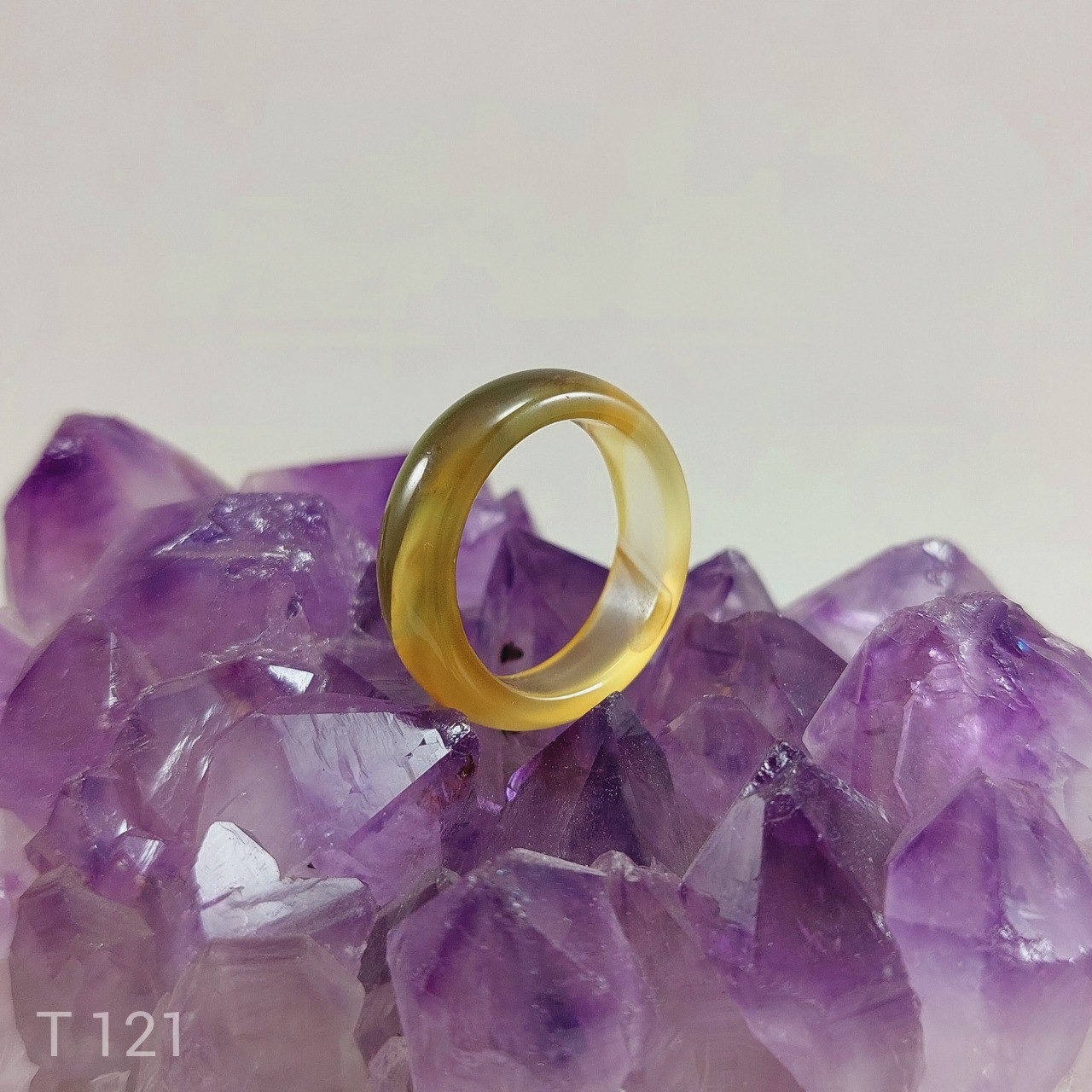 حلقه عقیق سلیمانی زرد و سبز کد T 121
