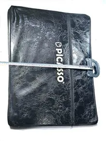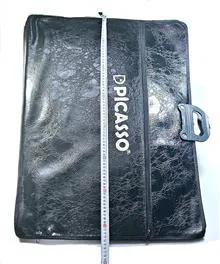 کیف آرشیو مهندسی پیکاسو از جنس چرم صنعتی ، قدیمی ، به علت قدمت دارای زدگی های جزئی میباشد که در تصاویر با فلش قرمز مشخص شده است