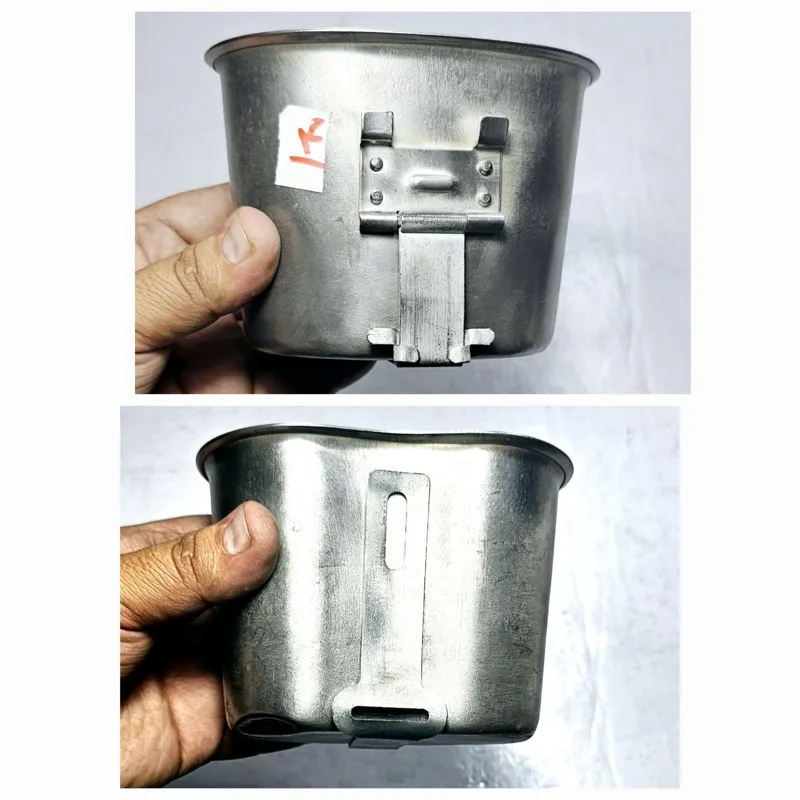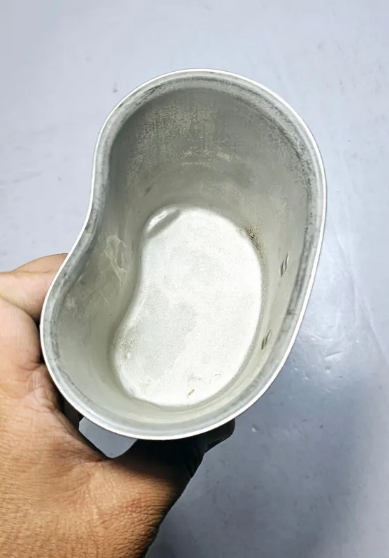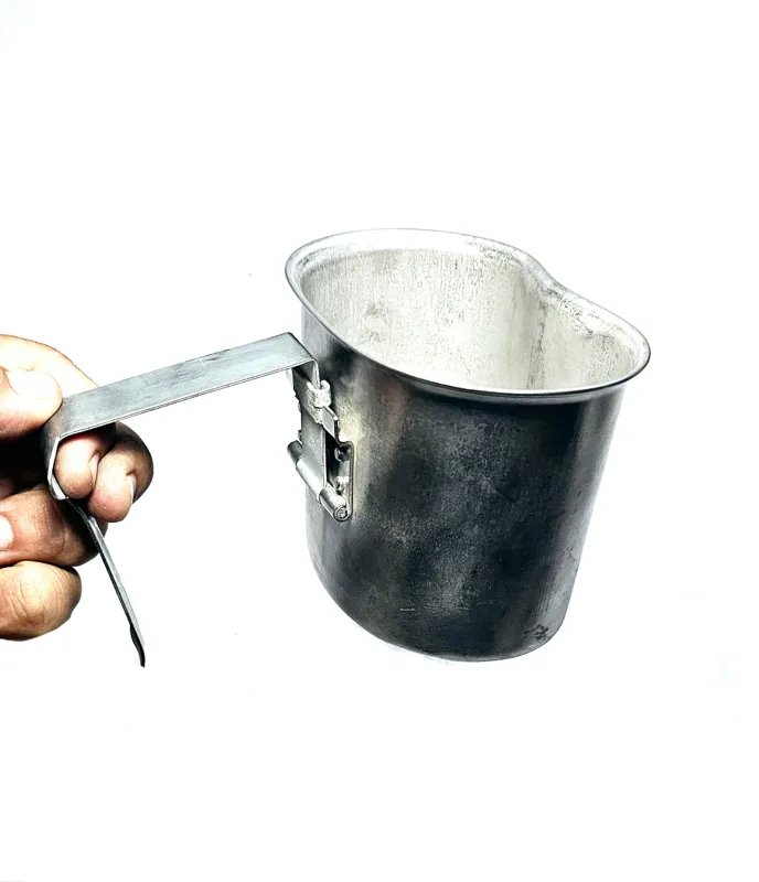 جا قمقمه ای آمریکایی نظامی اصلی  یا یقلوی قمقمه نظامی با کیفیت عالی و قدیمی ،  سال تولید 1945 , سال ساخت ، کشور و مشخصات روی دسته حک شده است ، به علت قدمت دارای خط و خش و فرورفتگی های جزئی و زنگار میباشد که در تصاویر مشخص است