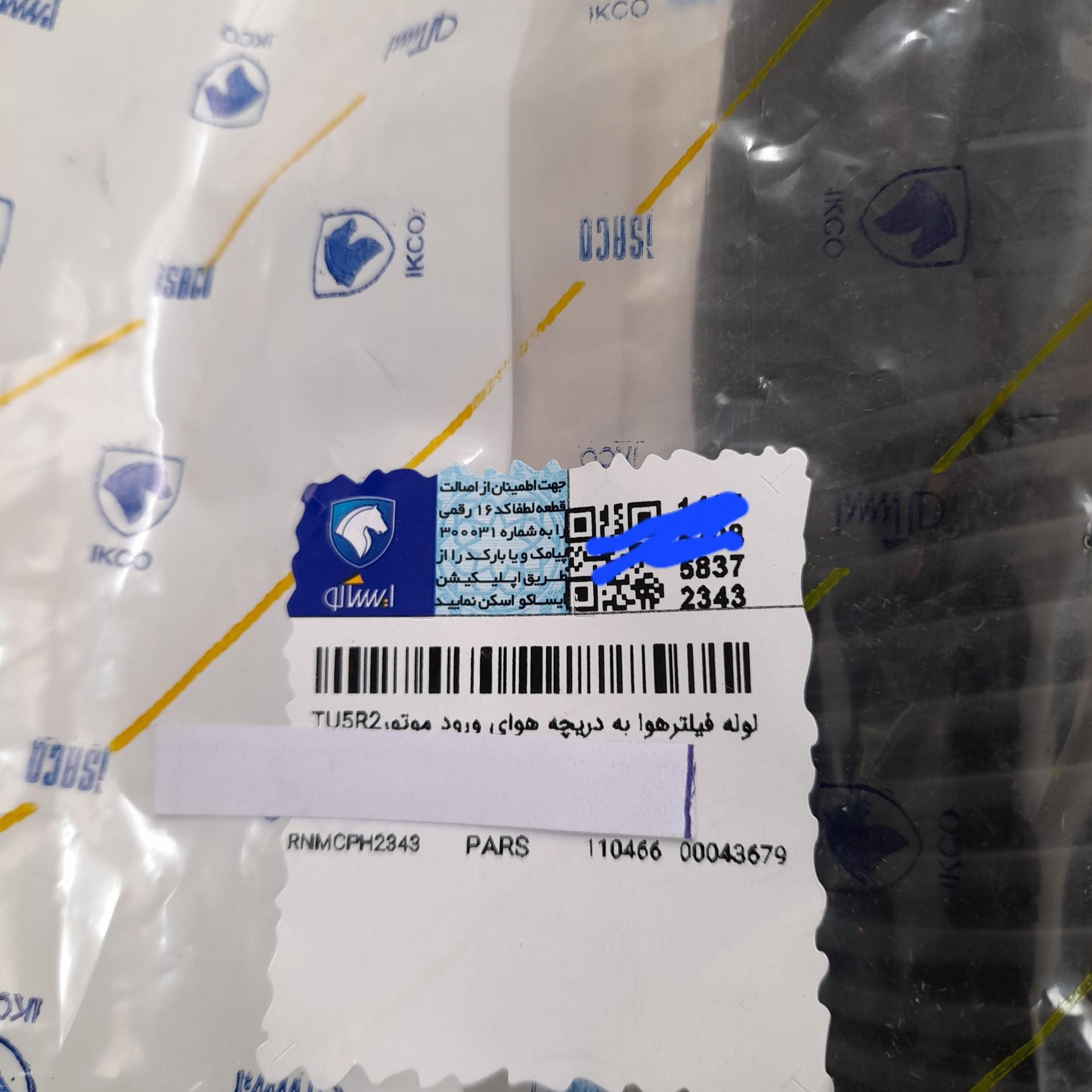 لوله ورودی هواکش 405 و پارس TU5 جدید ایساکو