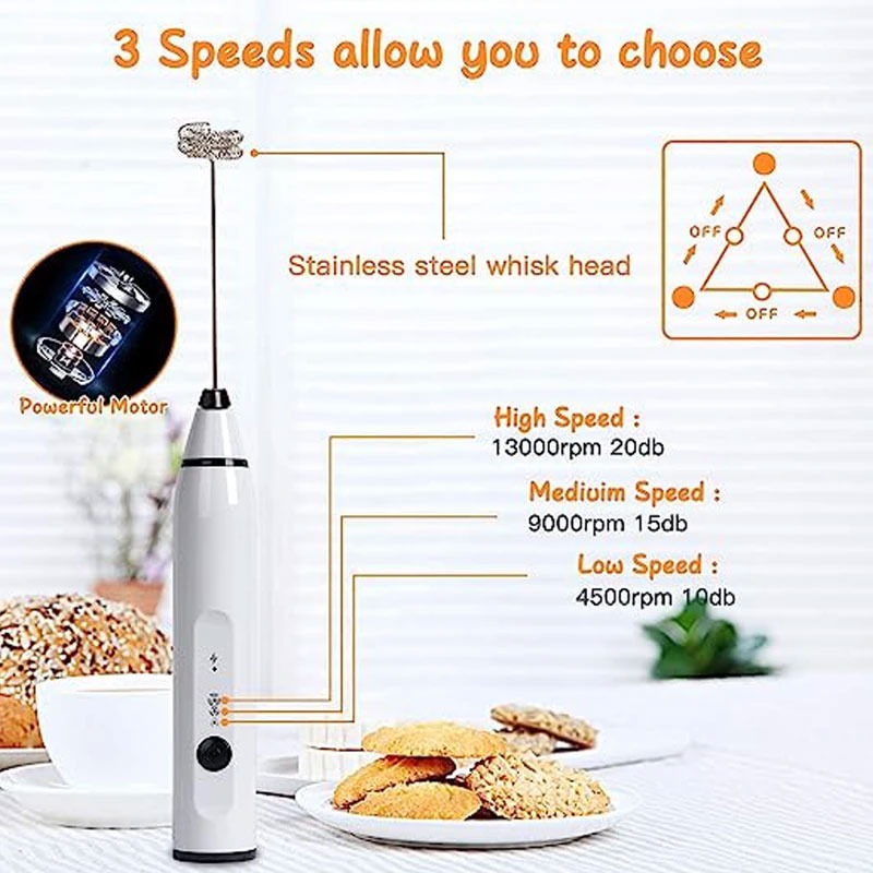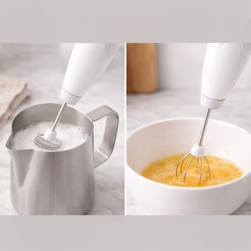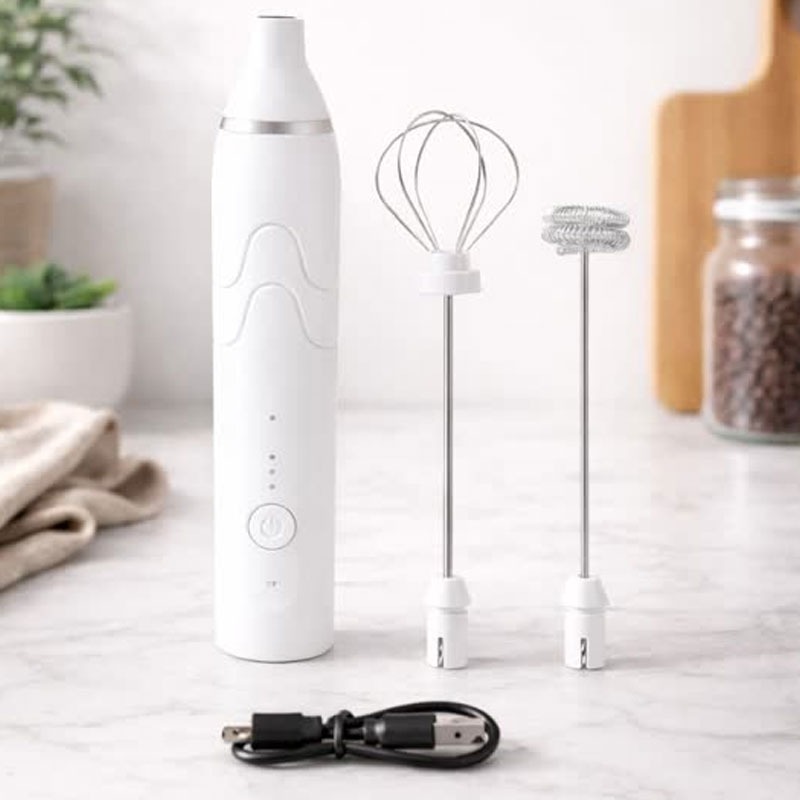 مینی همزن و کف ساز شیر و همزن تخم مرغ شارژی با 2 سری کاربردی و با قابلیت تنظیم سرعت همزن در 3 قدرت کم ، متوسط و زیاد یکی از بی نظیرترین و کاربردی ترین محصولات است که با قیمتی بسیار مناسب می توان تهیه کرد. توجه داشته باشید کیفیت این مدل بسیار بالاتر نسبت به مدلهای فیک بازار است پس از جهت کیفیت مطمئن خرید کنید. این دستگاه به شما امکان می دهد تخم مرغ، شیر و خیلی چیزهای دیگر را به راحتی هم بزنید. برای تهیه هات چاکلت، انواع نوشیدنی های میوه ای و کوکتل ها عالی است و برای تهیه قهوه معطر (کاپوچینو، موکا، لاته) در منزل نیز مناسب است.