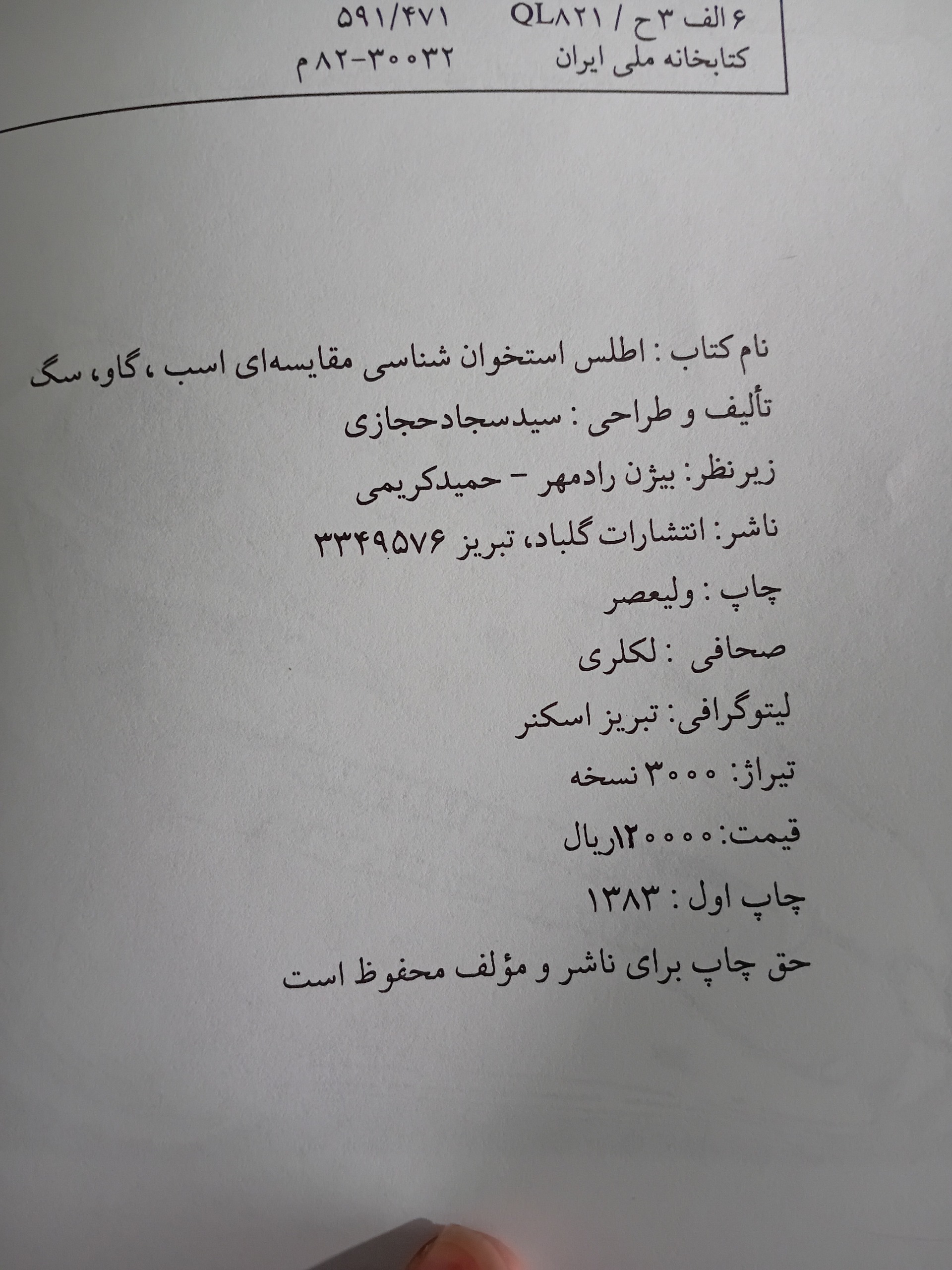اطلس استخوان شناسی مقایسه ای _اسب،گاو،سگ