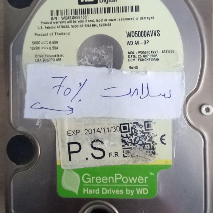 هارد دیسک 500 گیگ ت 70 درصد تست شده توسط نرم افزار مطابق تصویر به فروش میرسد