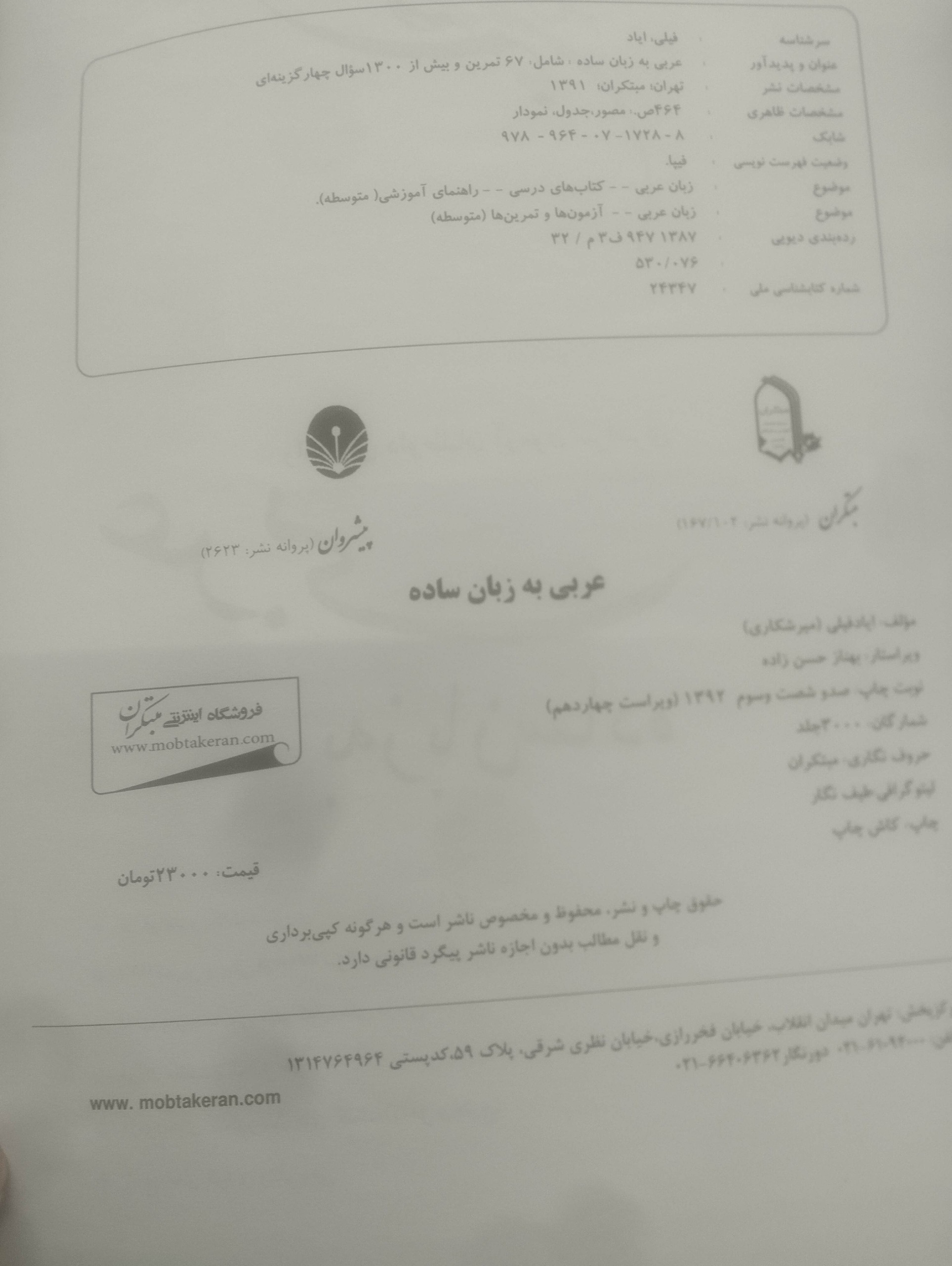 | نوع چاپ کتاب | چاپ اصل |