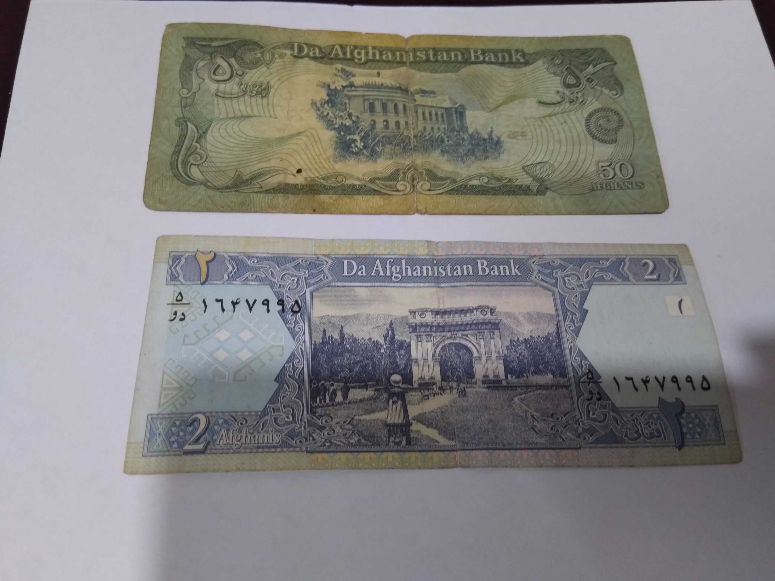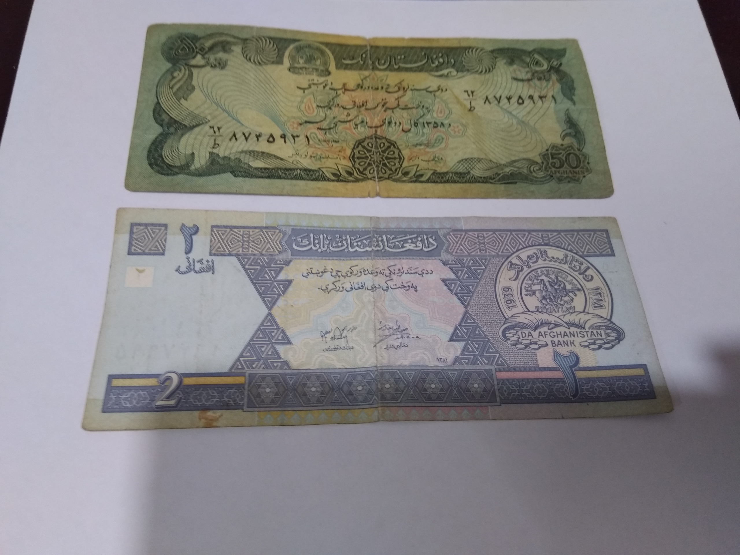 دو عدد اسکناس مختلف افغانی ،قدیمی و زیبا و با ارزش ، طبق تصویر ارسال می شود، با تشکر